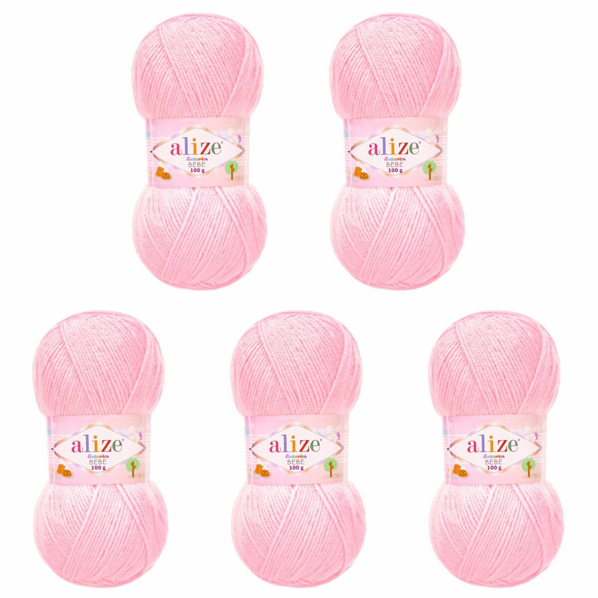 Пряжа для вязания ALIZE 'SEKERIM BEBE' 100 г, 320 м (100% акрил) (185 светлая роза), 5 мотков