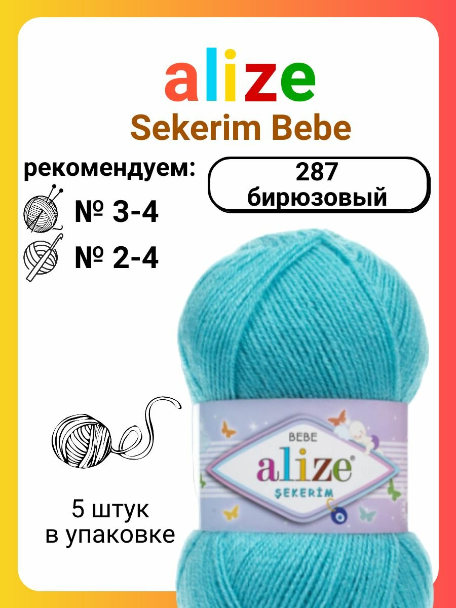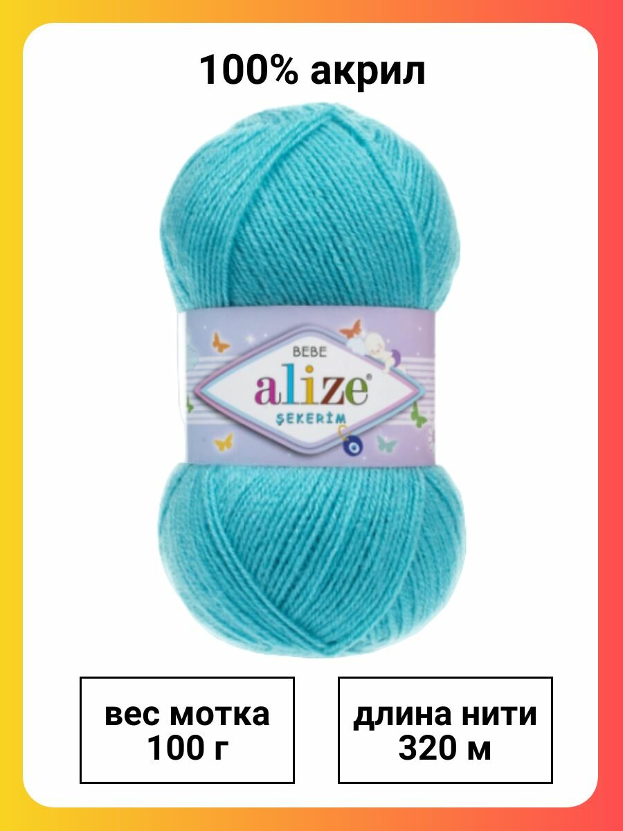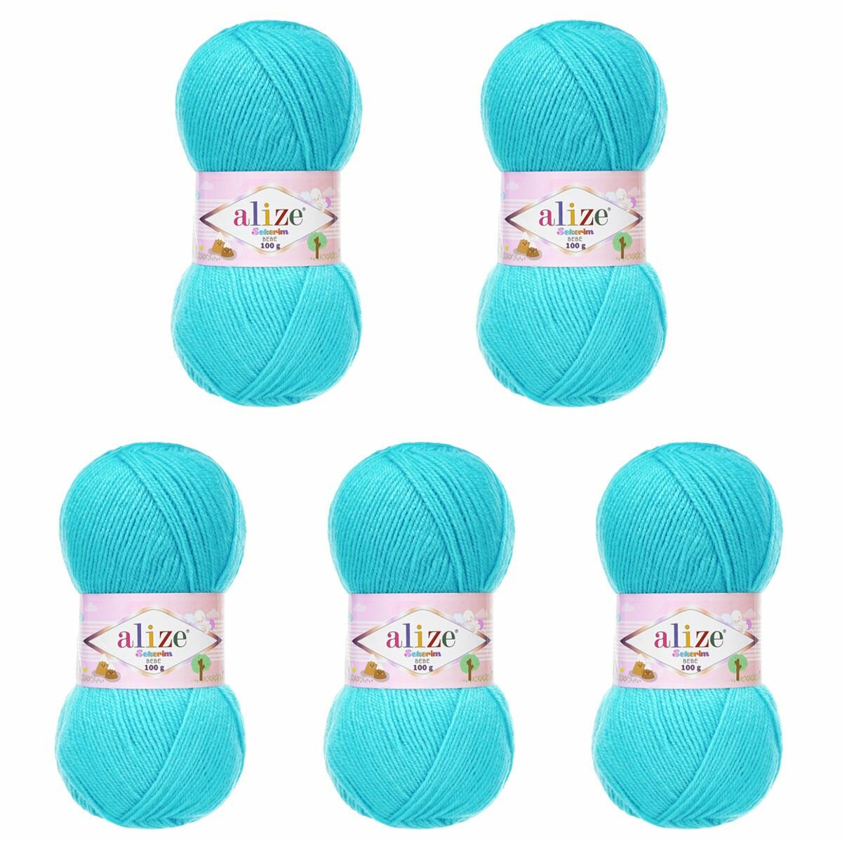 Пряжа для вязания Alize Sekerim Bebe (Шекерим Беби) - 5 мотков 287 бирюзовый, детская гипоаллергенная, 100% акрил, 320м/100г