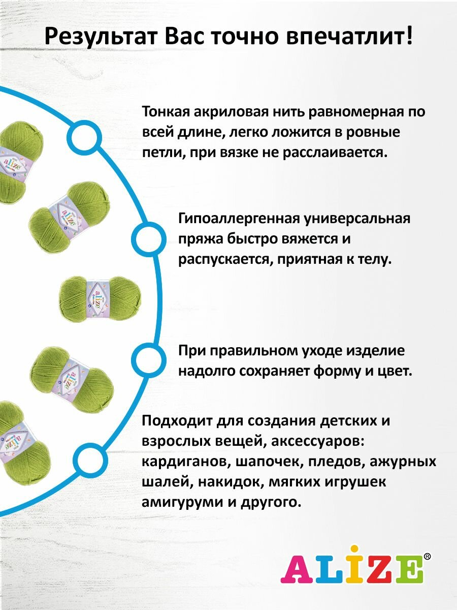 СохранитьПряжа для вязания Alize Sekerim Bebe (Шекерим Беби) - 5 мотков 117 фисташковый, детская гипоаллергенная, 100% акрил, 320м/100г интересное: