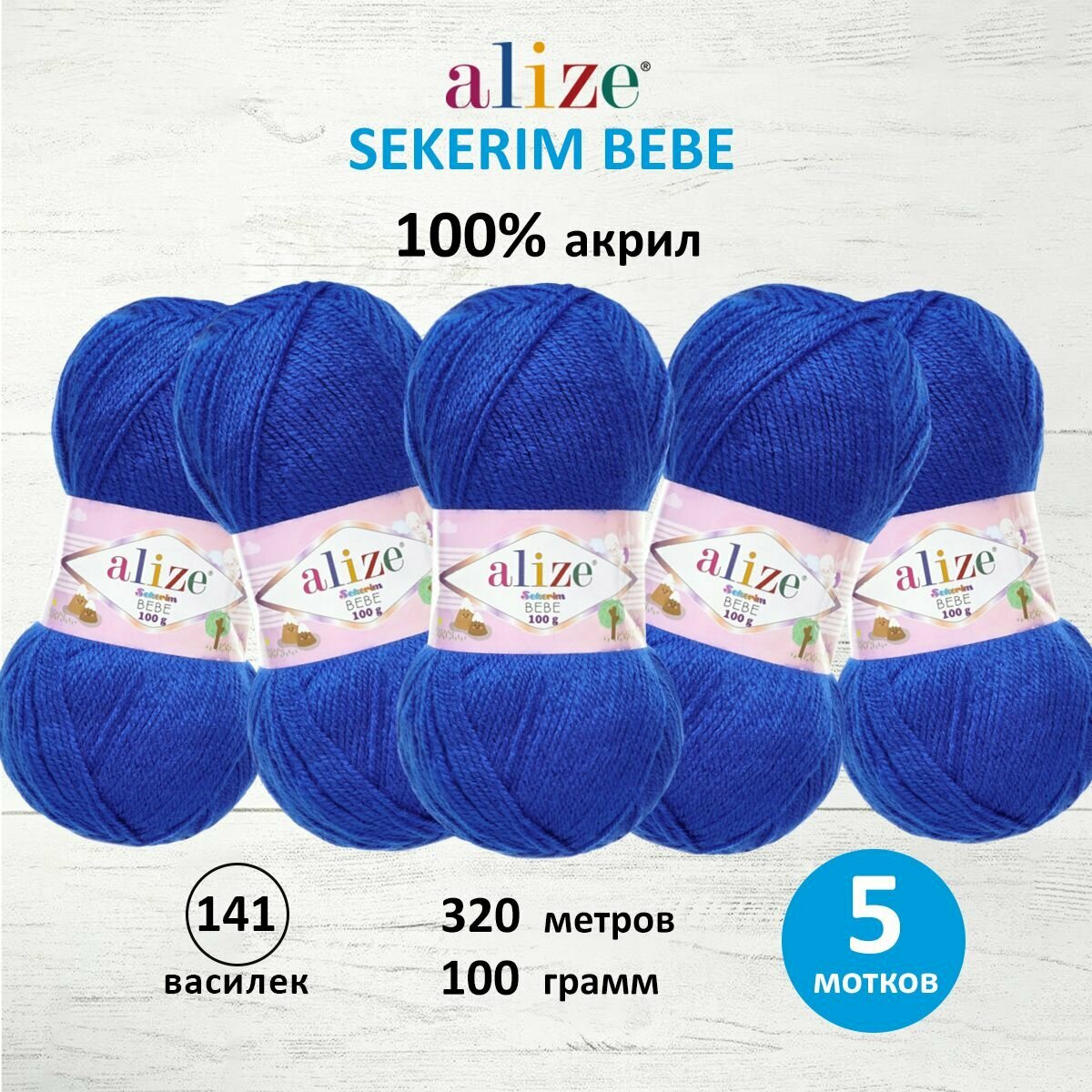Пряжа ALIZE SEKERIM BEBE, василек - 141, 100% акрил, 5 мотков, 100 г, 320 м.