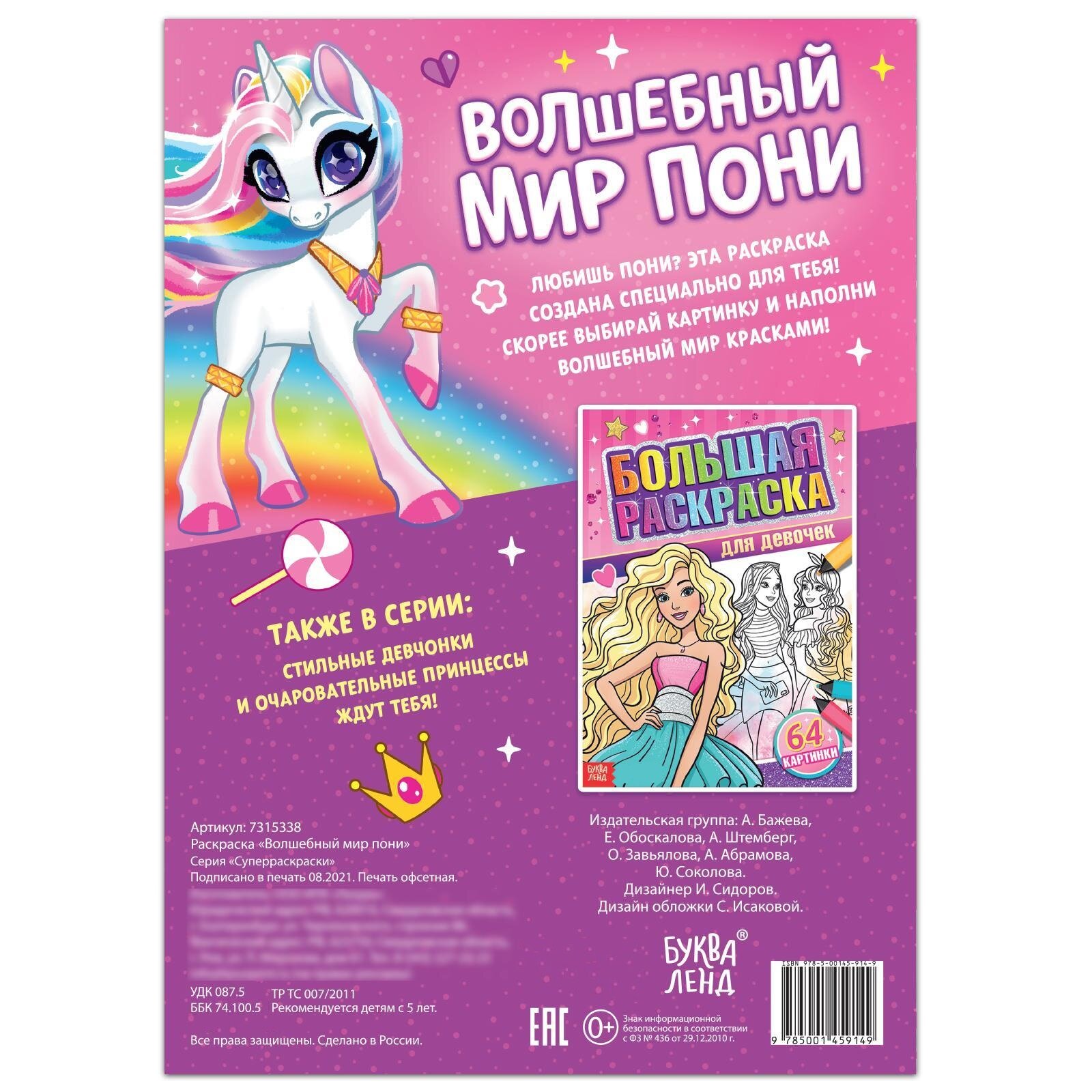 Купить Раскраска детская "Волшебный мир пони", 68 стр., формат А4, 64 крупных иллюстрации, Буква-Ленд