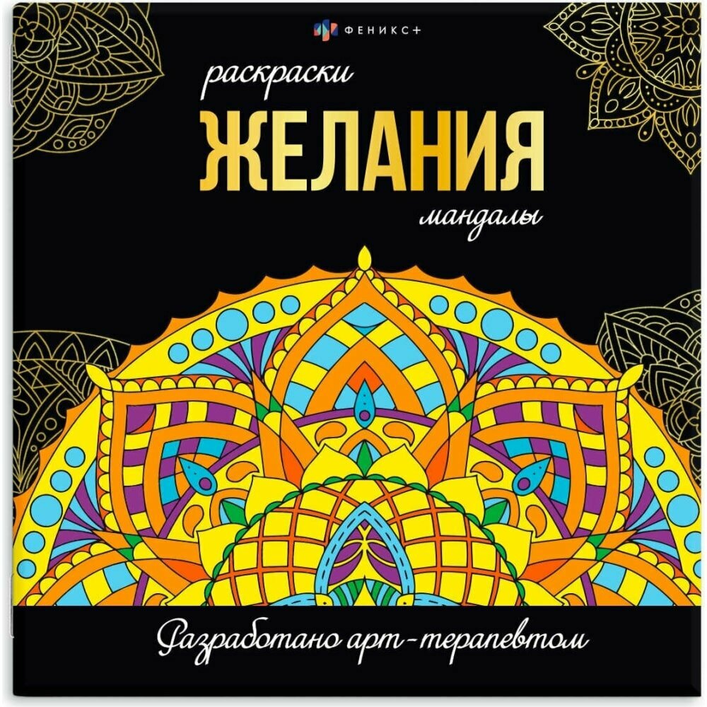 Феникс + Раскраска. Серия "Раскраски-мандалы"арт.63621 желания /225х225 мм, 16 л.,бл-офсет 120 г/м2,печ.в одн.краску, обл - мелов.карт.250 г/м?, выборочный УФ-лак, клеевое скрепление,