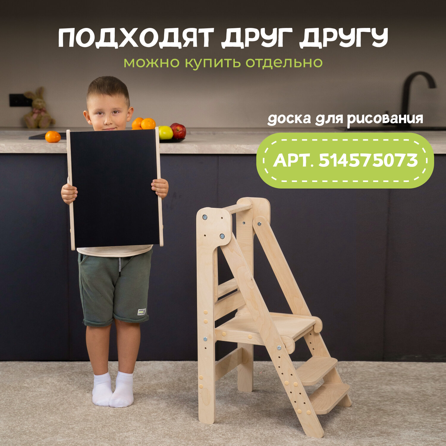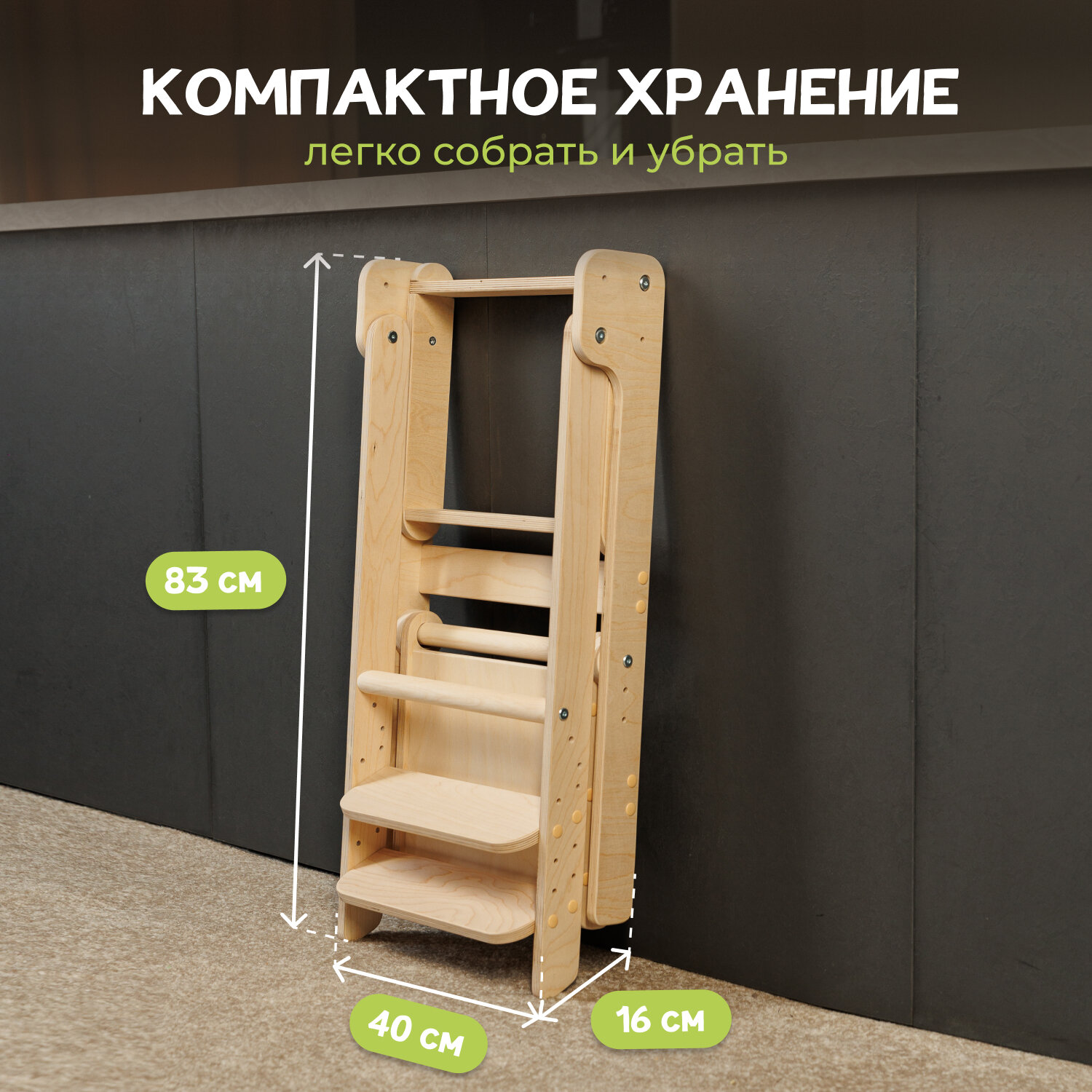 Башня помощника Монтессори "Я сам" шлифованный с доской PAPPADO стульчик для кормления