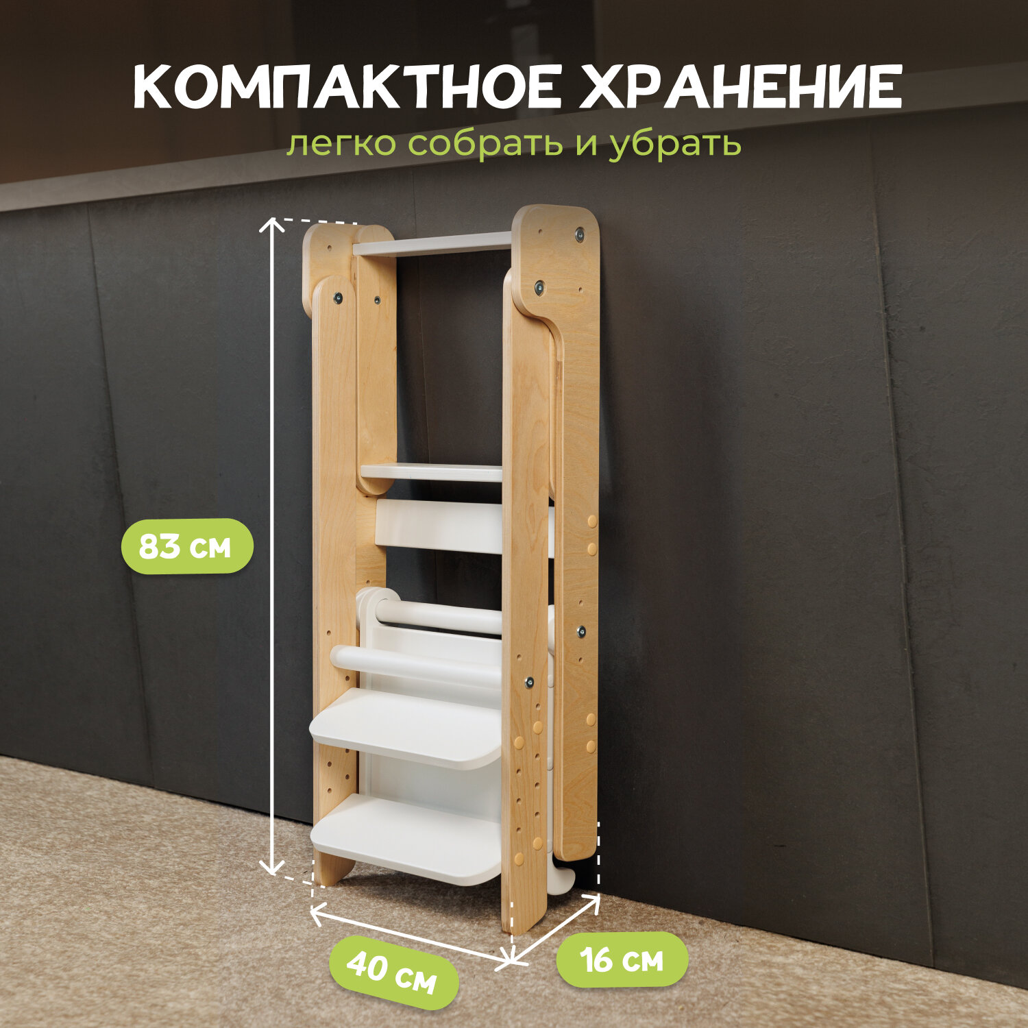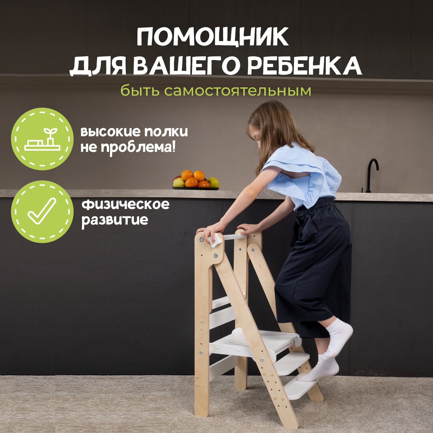 Башня помощника Монтессори "Я сам" белый+лак с доской PAPPADO стульчик для кормления