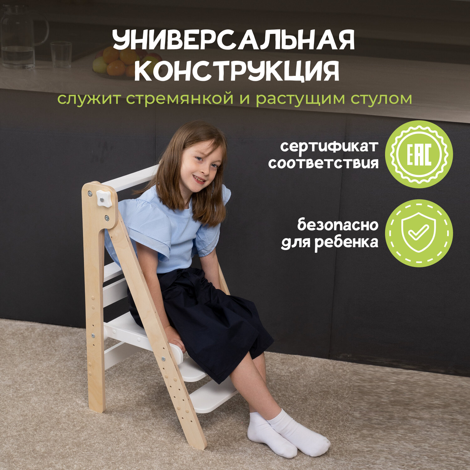 Башня помощника Монтессори "Я сам" с доской-ограничителем белый+лак PAPPADO стульчик для кормления