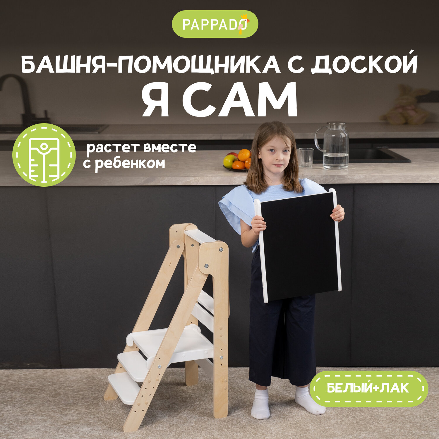 Купить Башня помощника Монтессори "Я сам" белый+лак с доской PAPPADO стульчик для кормления