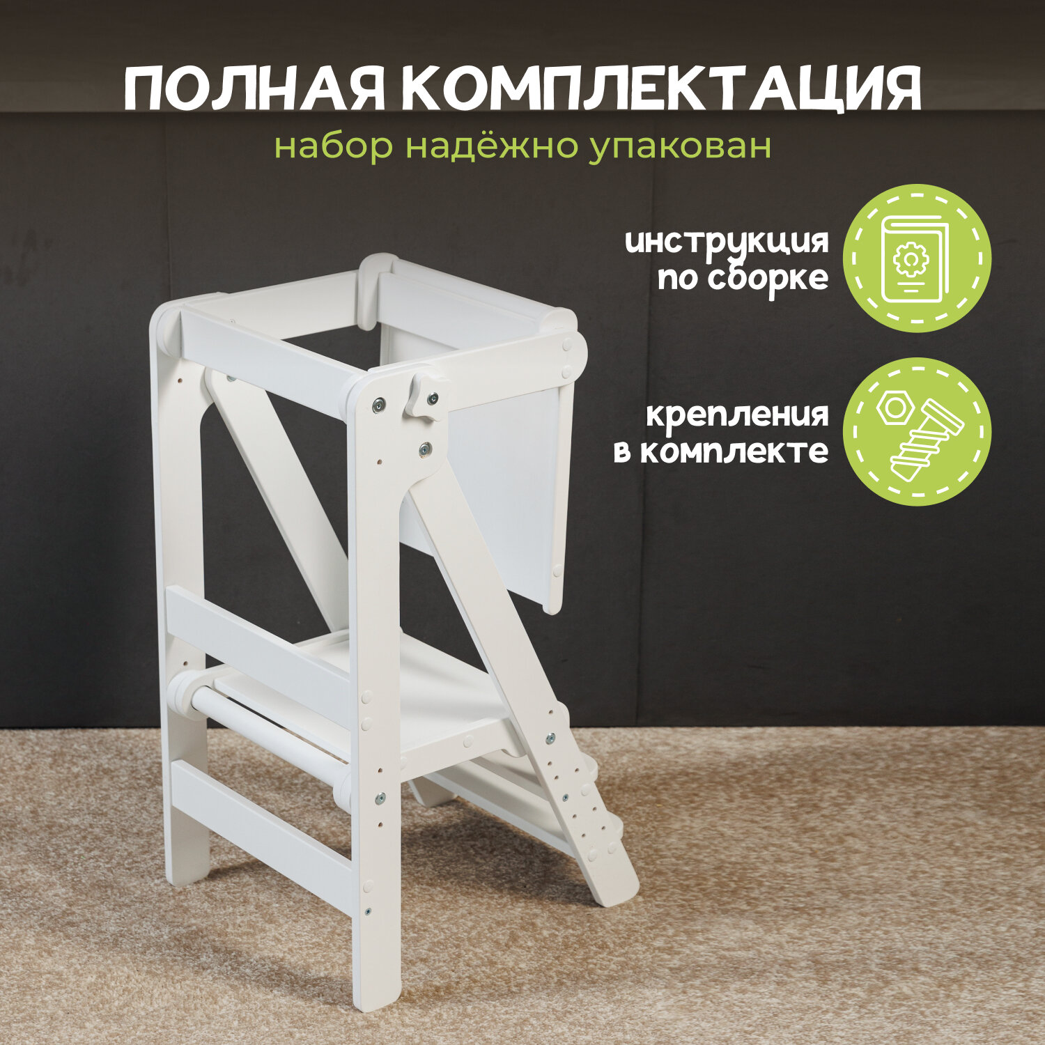 | Комплектация | башня помощника Монтессори / фурнитура / инструкция по сборке |