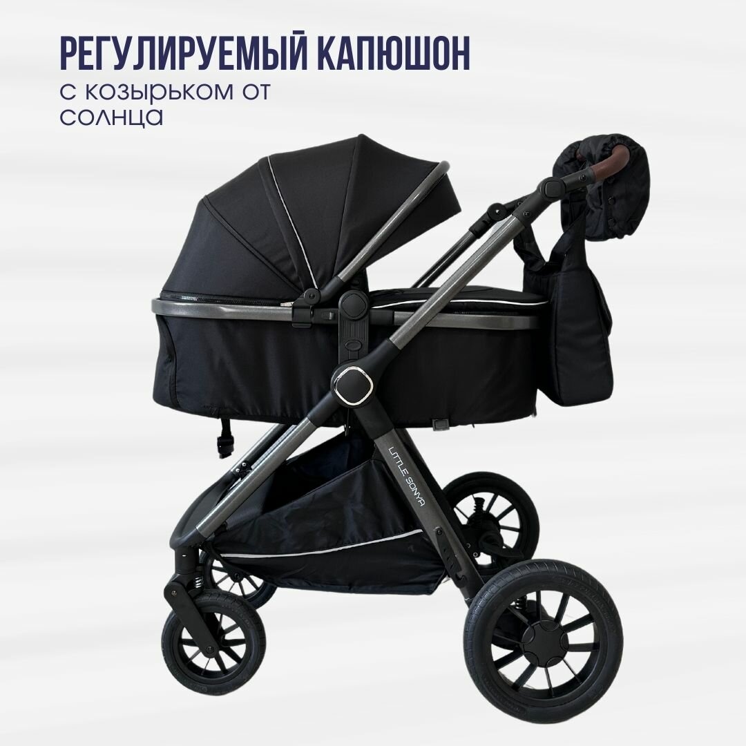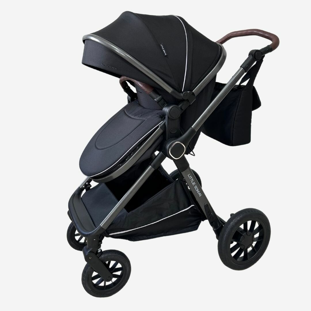 Детская коляска трансформер с перекидной ручкой Little Sonya A4 3в1 Черный