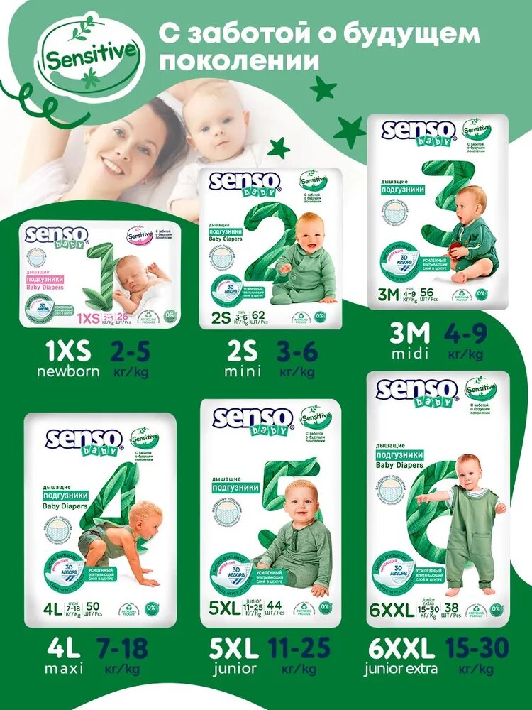 Ниже Вы можете прочитать отзывы на Подгузники Senso Baby Sensitive для детей 5XL (11-25кг) 44шт, ознакомится с подробными характеристиками, посмотреть интересные обзоры и фотографии на Подгузники Senso Baby Sensitive для детей 5XL (11-25кг) 44шт.