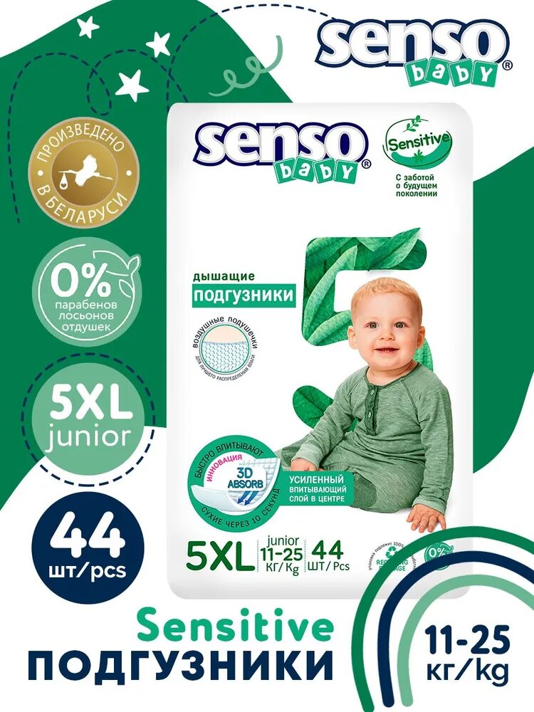 Senso baby Подгузники детские Senso Baby Sensitive 5 XL JUNIOR (11-25 кг), 44 шт.