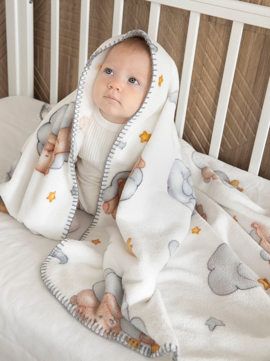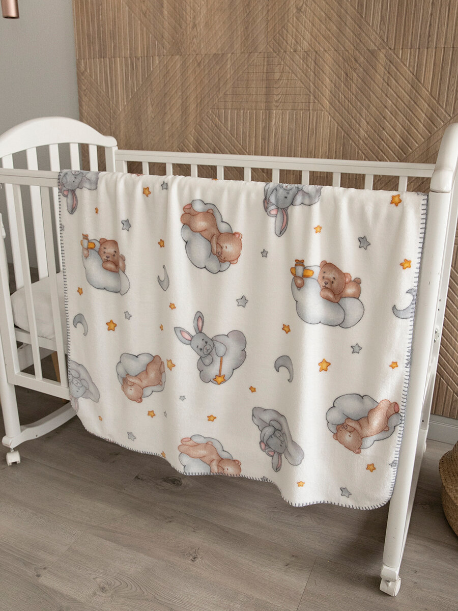 Купить Плед для новорожденного 100х140 пушистый детский в кроватку "Спящие мишки"