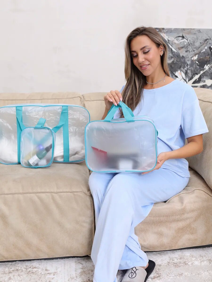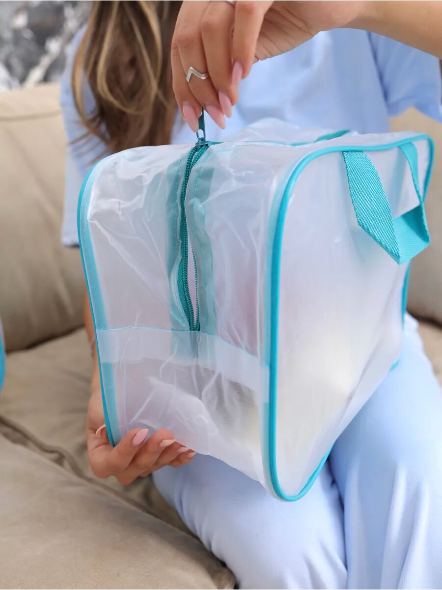Прозрачные сумки матовые в роддом 3 шт., бренд "Золотой октябрь", цвет бирюзовый интересное: