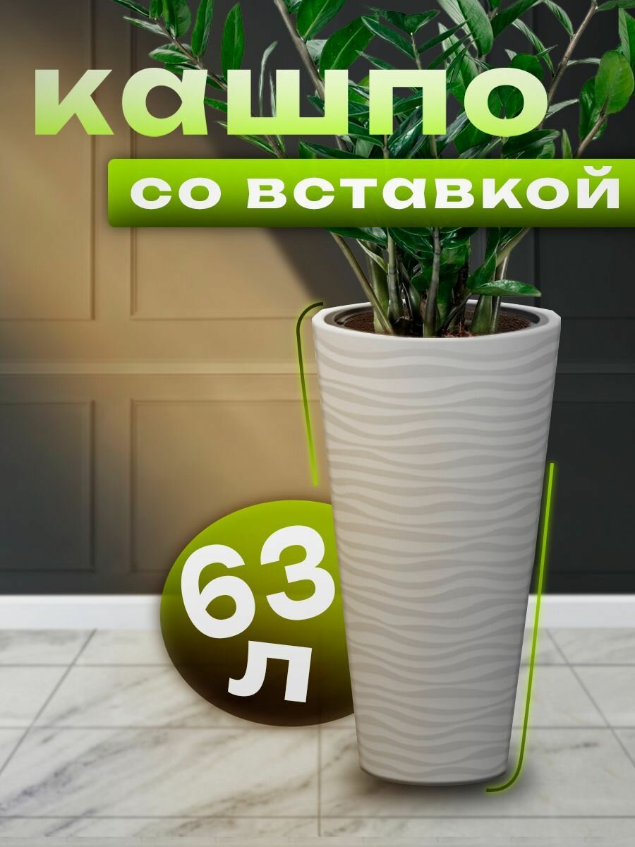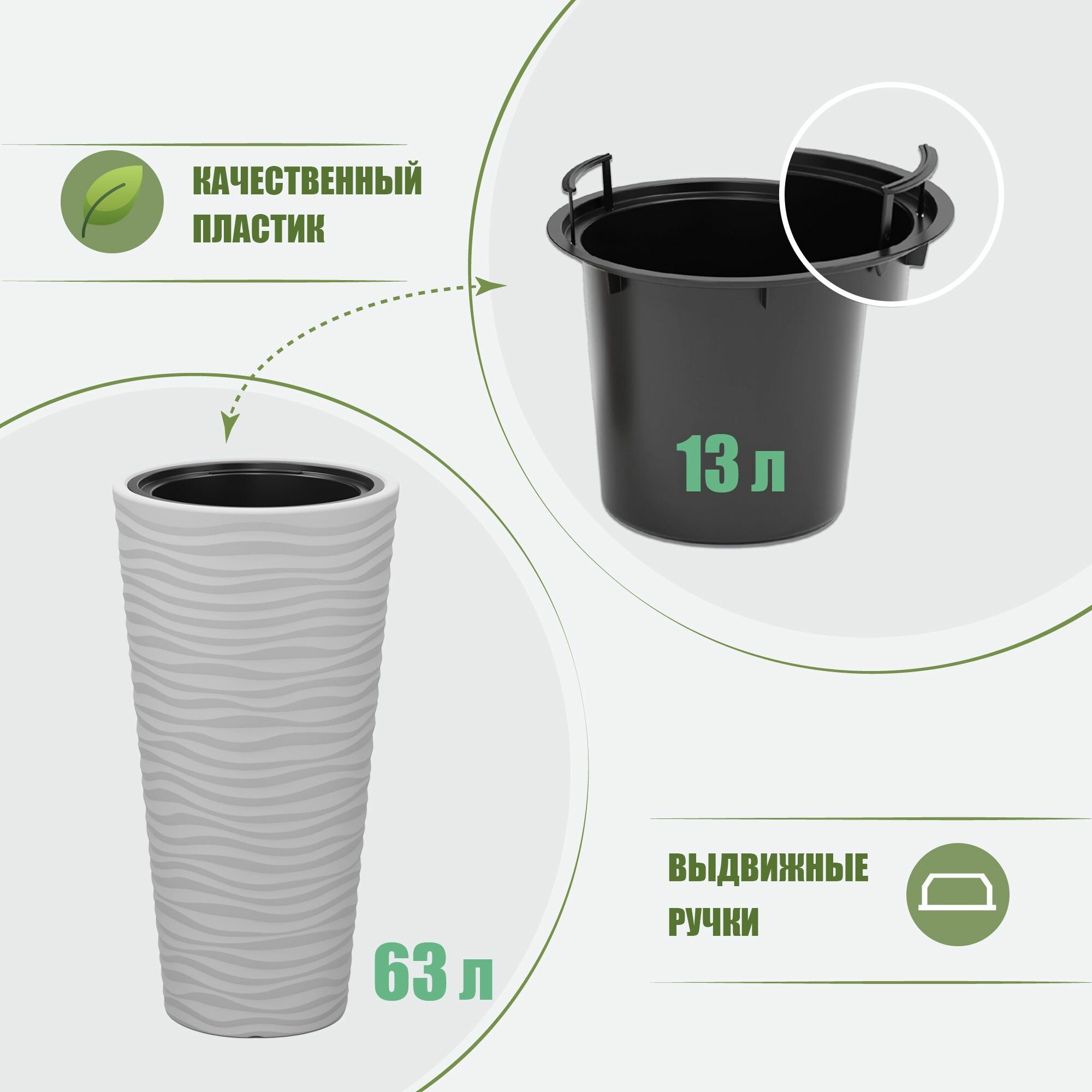Кашпо "Оазис" 43л (со вставкой 10л) серый. Объемная текстура "волна" создает красивые блики на поверхности и придает изделию особый шарм