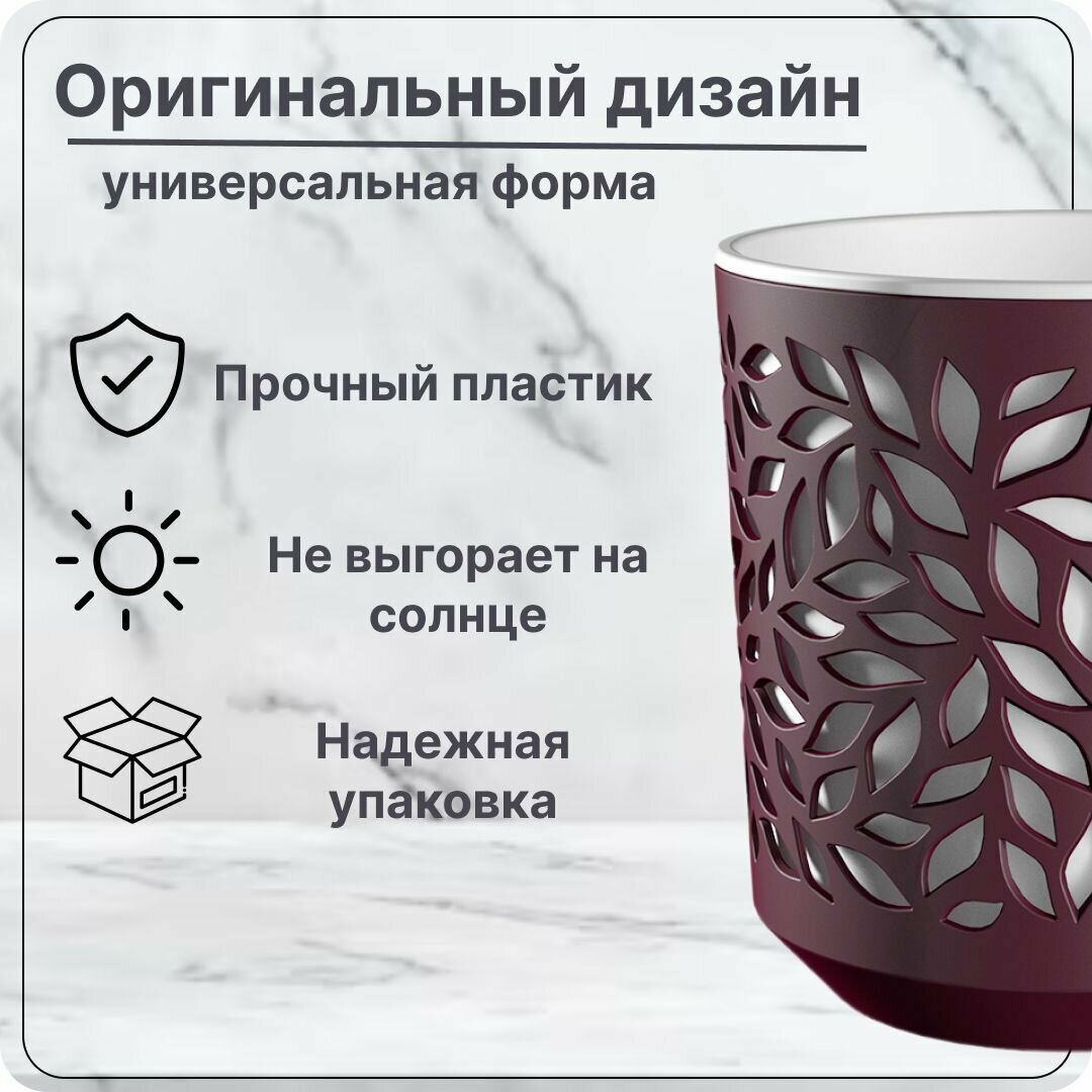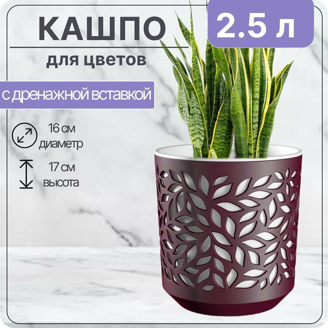 СохранитьКашпо пластик, 2.5 л, 17х14.5 см, бордо/белый, ВМС, Leaves, КШ-9575 интересное:
