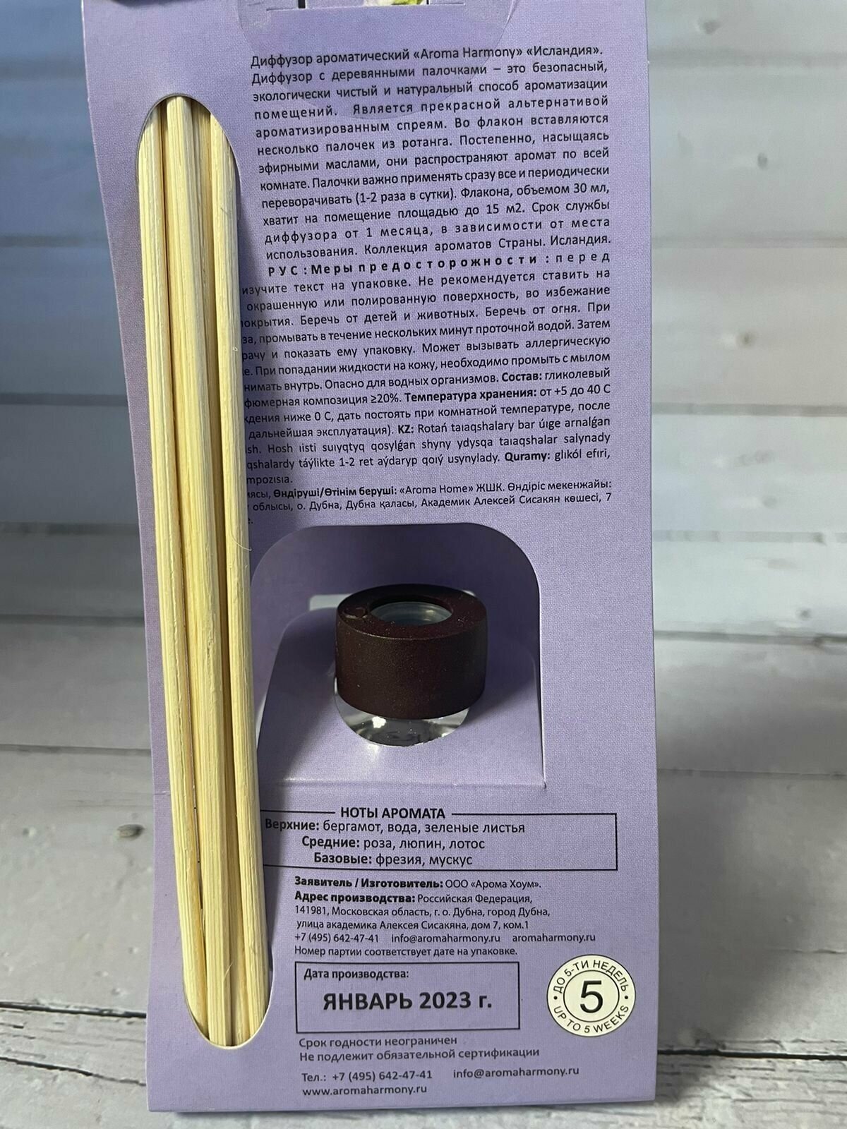 | Подробная комплектация | диффузор ароматический, 5 ротанговых палочек |