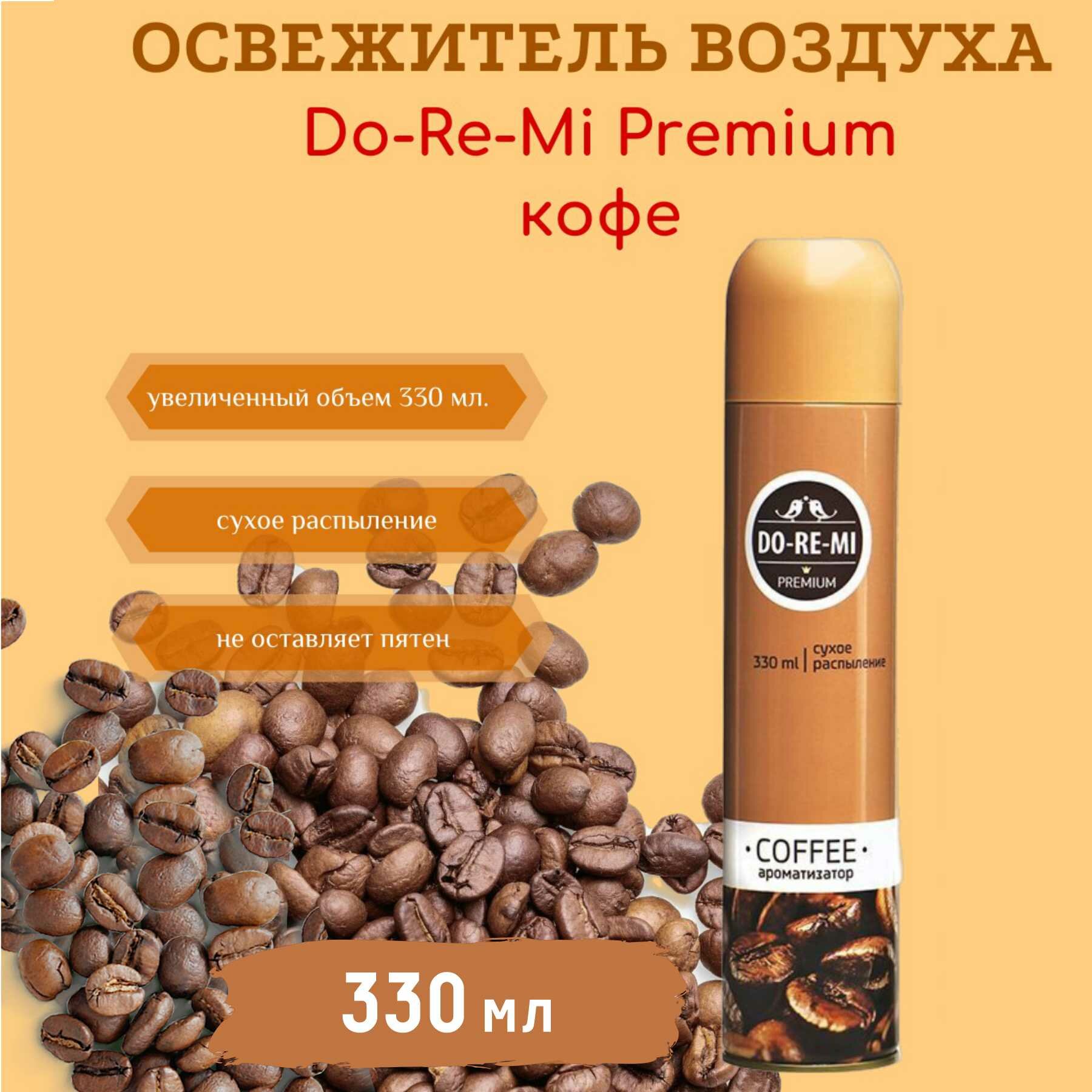 Освежитель До-Ре-Ми Премиум, аромат кофе, универсальный, сухое распыление, 330 мл
