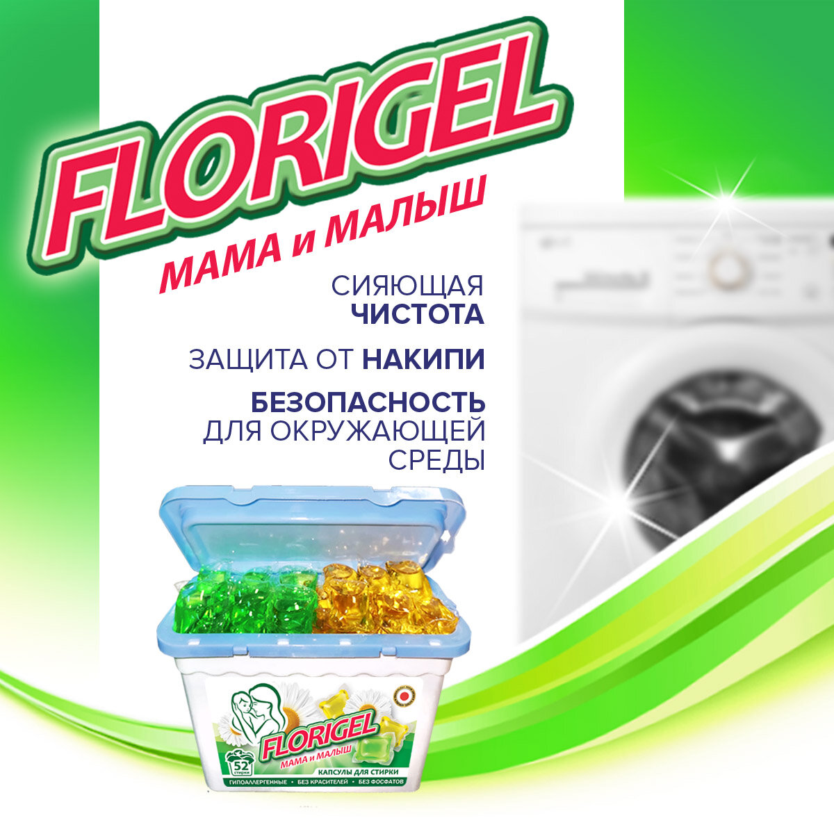 Капсулы для стирки белья 52 штуки FLORIGEL "мама и малыш" интересное: