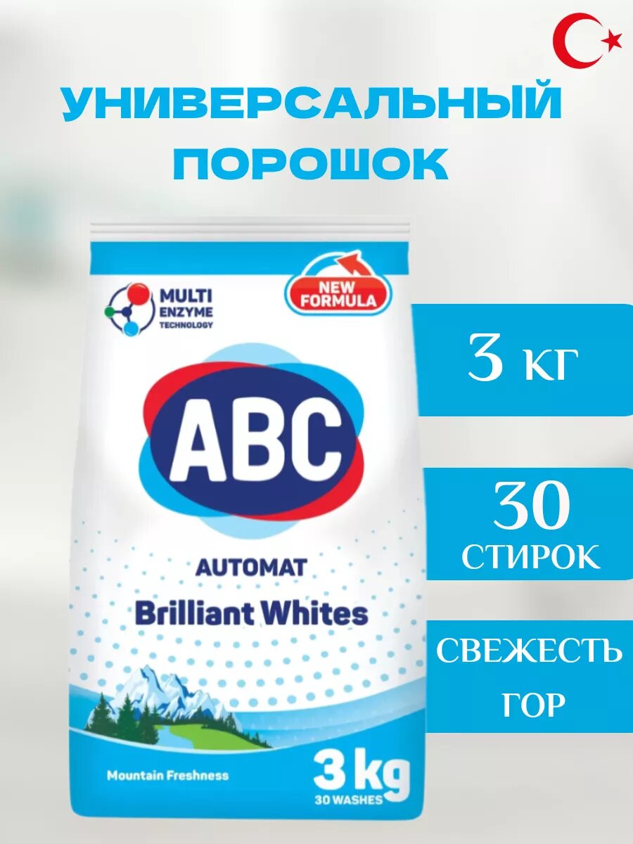 ABC Стиральный порошок Свежесть Гор для белого белья 3 кг