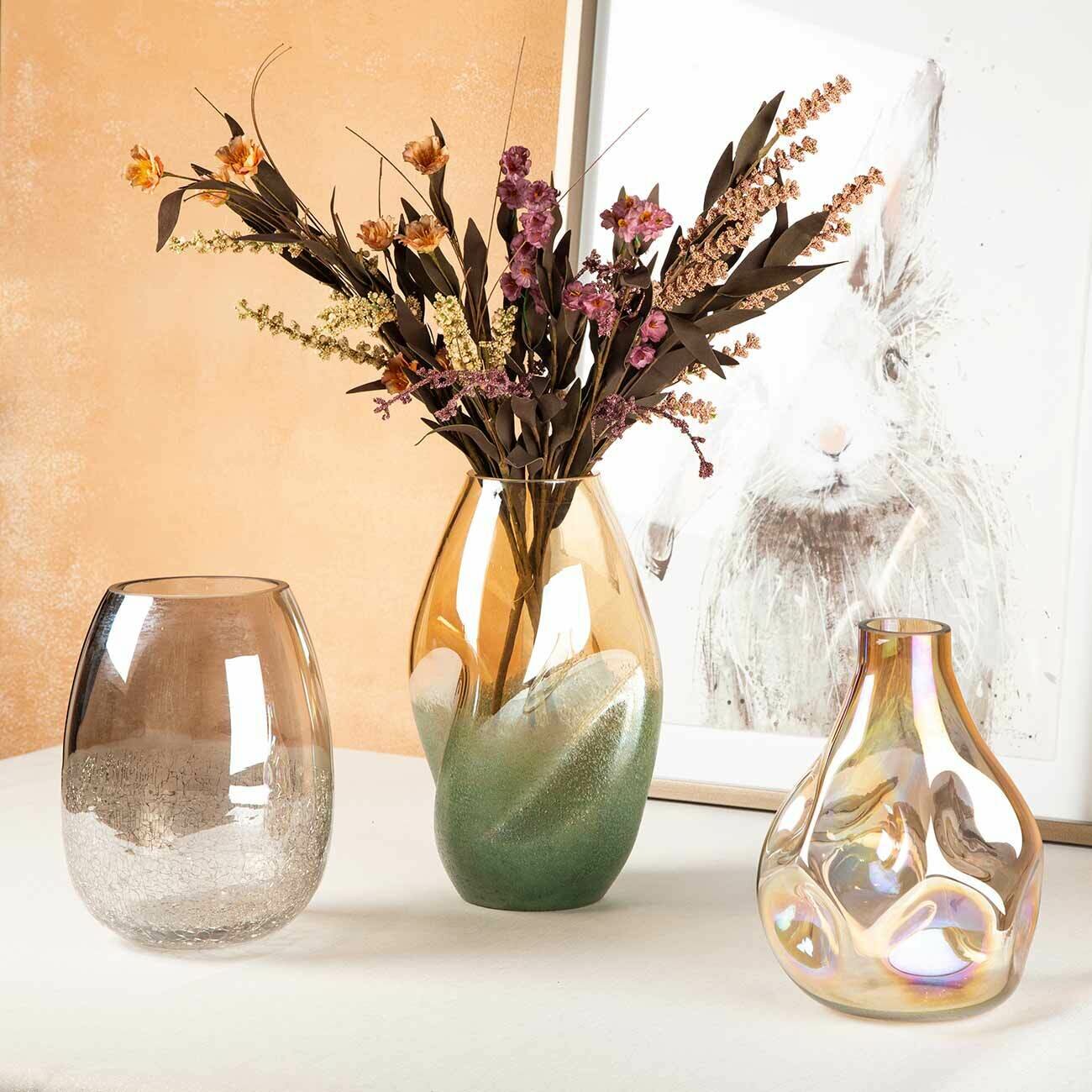 Ваза для цветов, "Kuchenland", 26 см, стекло, бежевый градиент, Кракелюр, Ice