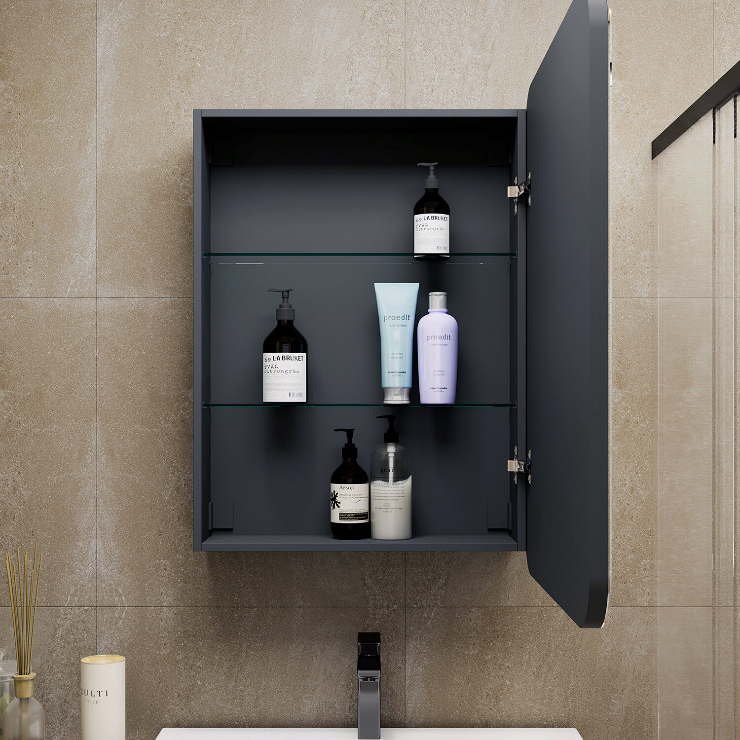 Шкаф зеркало в ванную Джерси 60 (правый) 3 цвета подсветки, часы, сенсорное управление, черный