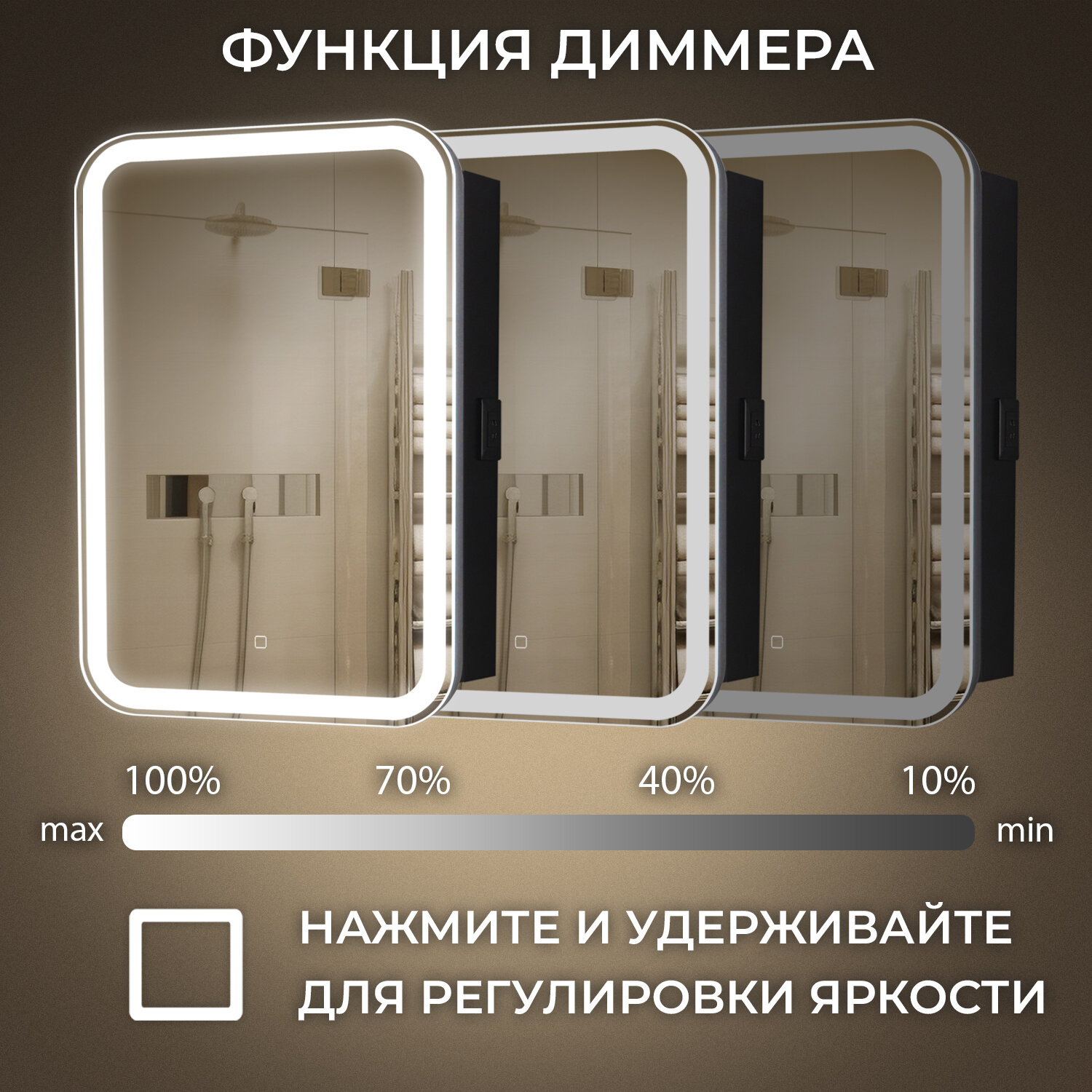 СохранитьШкаф зеркало в ванную/зеркало шкаф настенный Джерси 60 (правый) 3 цвета подсветки (теплый свет/дневной свет/холодный свет) с часами, сенсорное управление с регулировкой яркости, черный, влагостойкий,шкаф в ванную интересное: