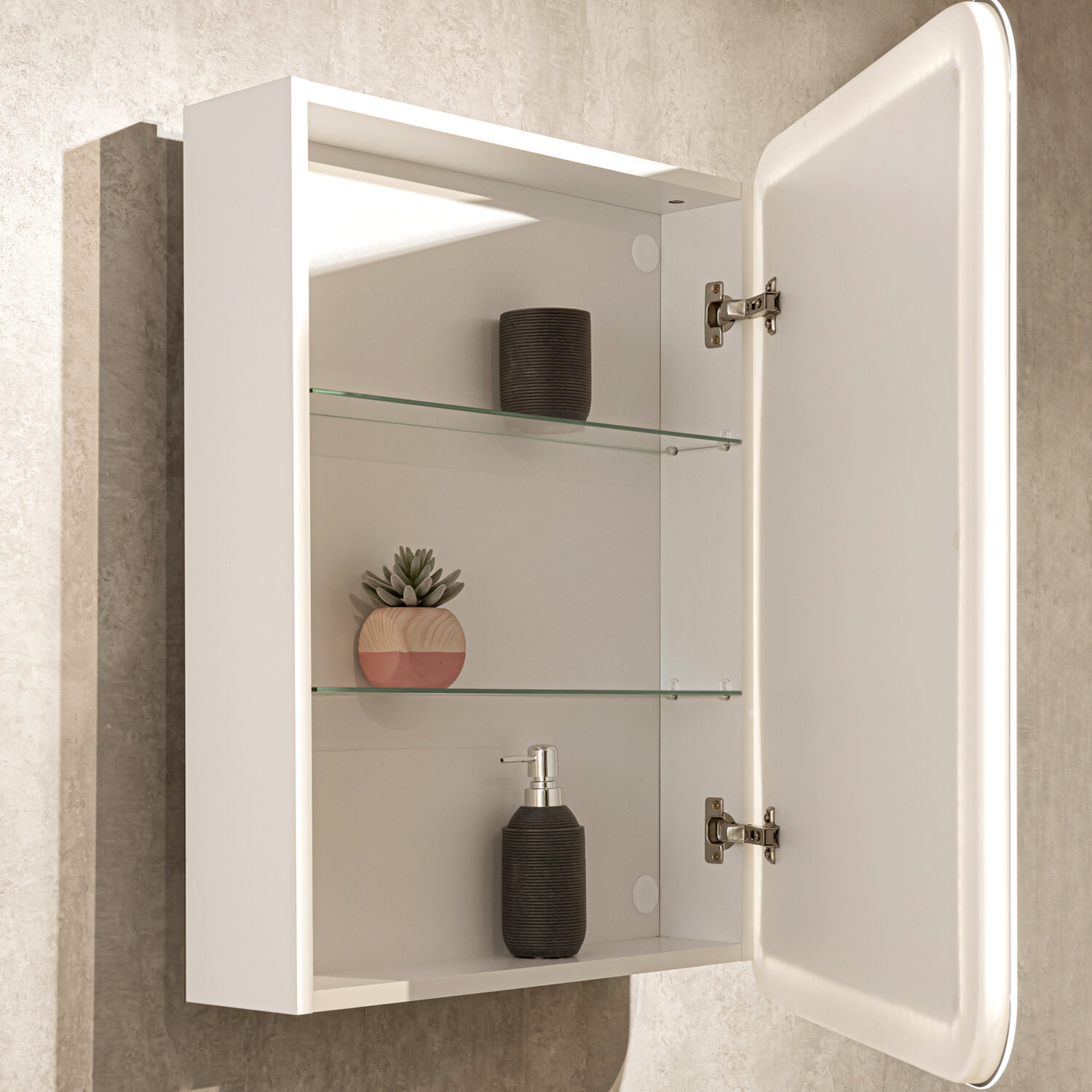 | Особенности | зеркало-шкаф, подсветка, регулировка яркости подсветки, с часами, сенсорный выключатель подсветки |
