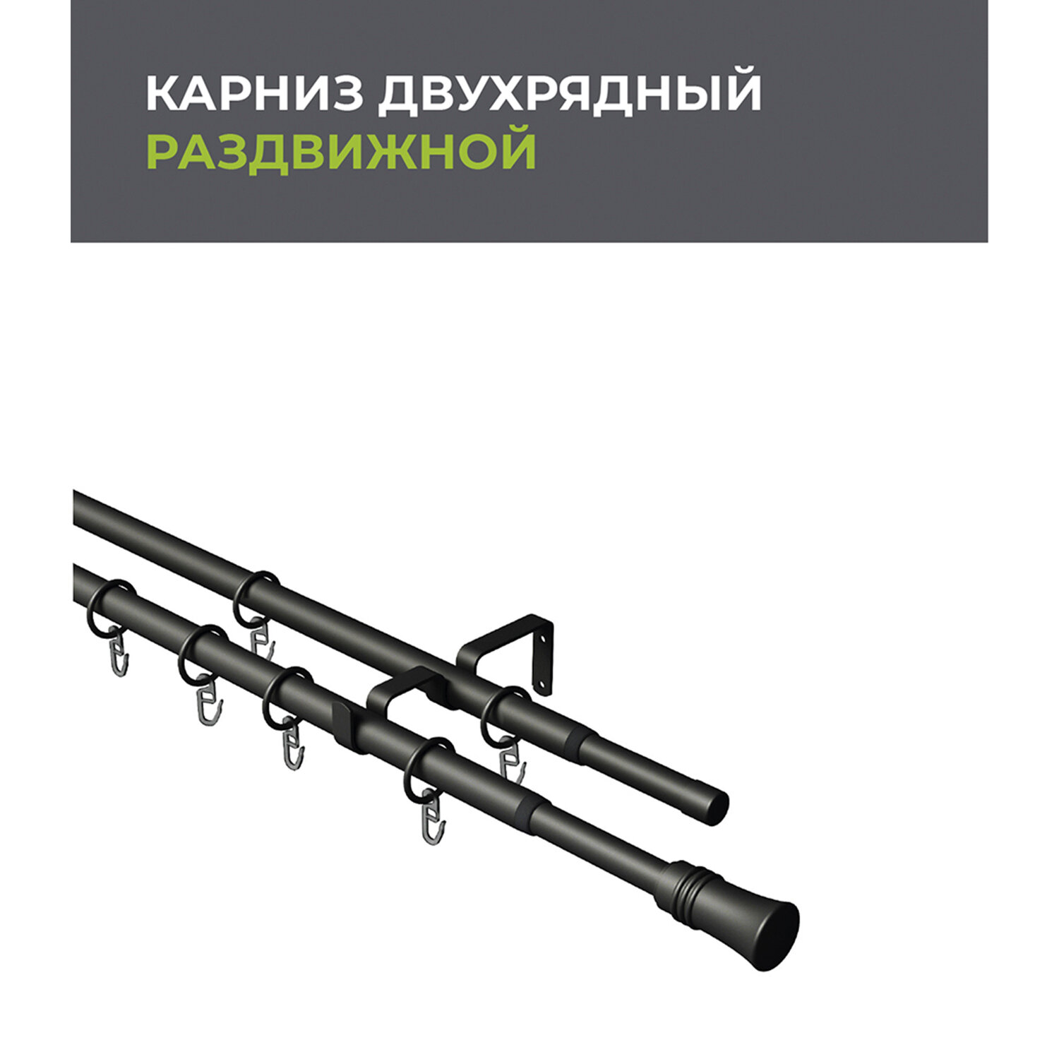 Купить Карниз настенный металлический двухрядный раздвижной 160-300 см d16/19 мм черный (6662)