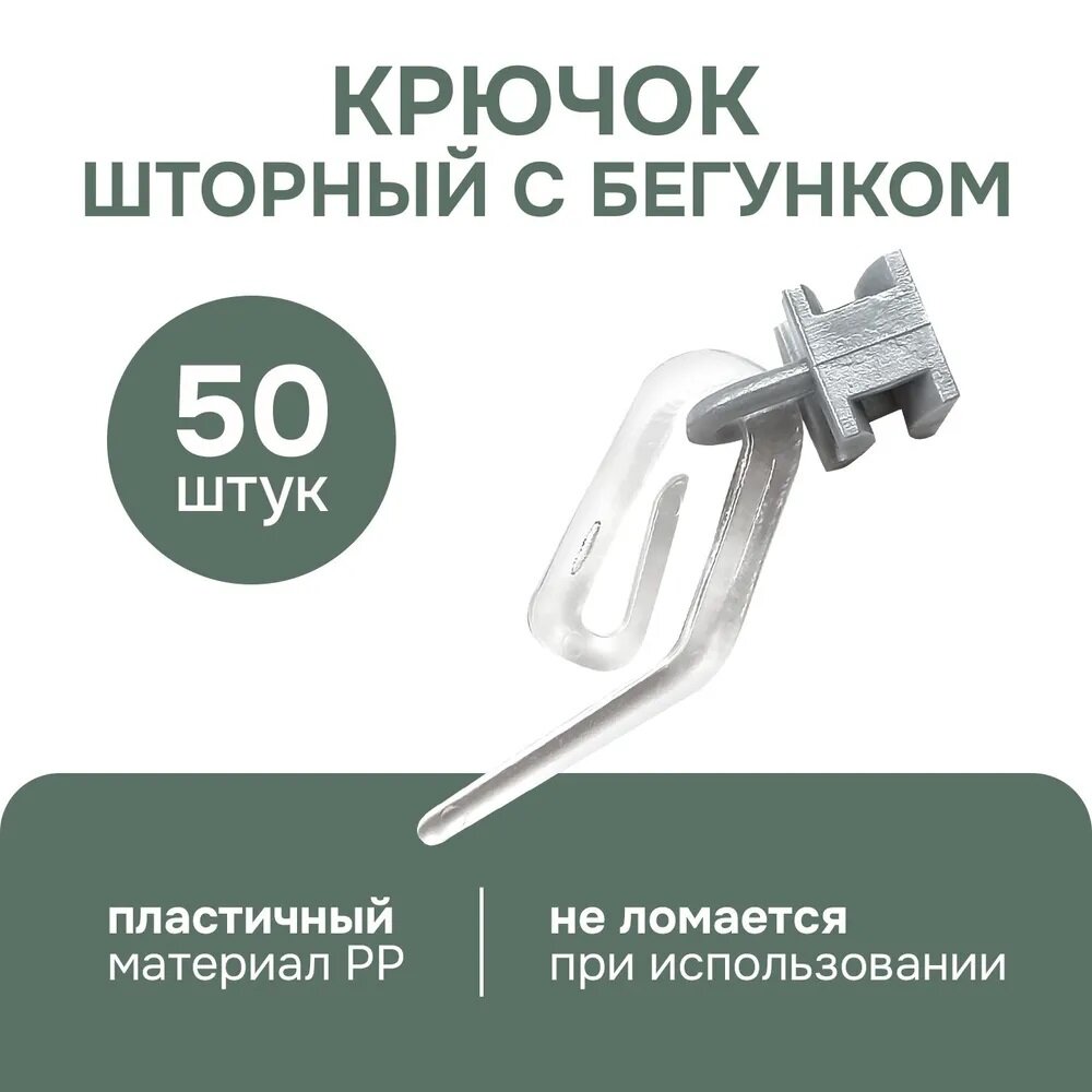 СохранитьКрючок шторный с бегунком, "Эскар" 50 шт., 2.7 см, пластик, прозрачный/серый, арт.240442 интересное:
