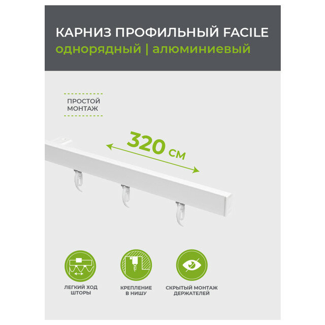 Купить Карниз потолочный алюминиевый однорядный Facile 320 см белый