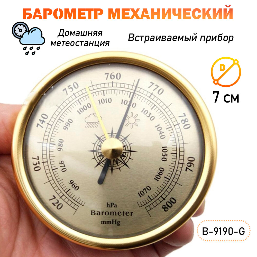 Барометр B 9190 G бытовой/ встраиваемый/ диаметр 72 мм, цвет - золотистый