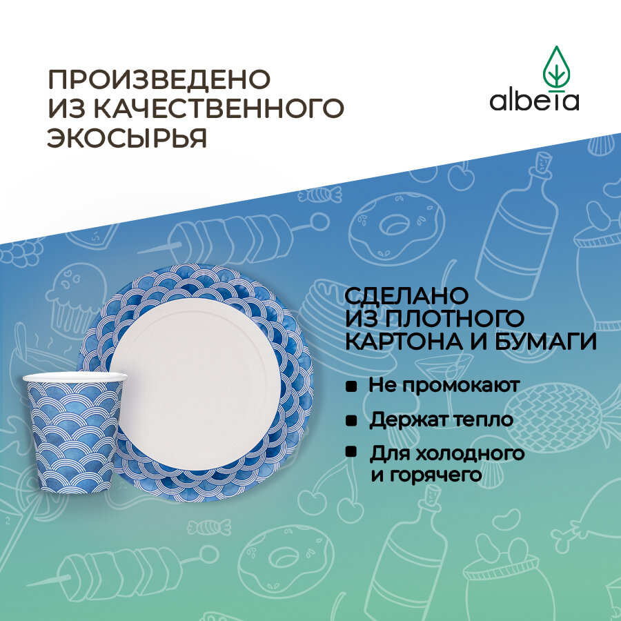 СохранитьОдноразовая посуда для праздника (тарелки, стаканчики, вилки, ножи) набор на 20 персон, принт "Волна" интересное: