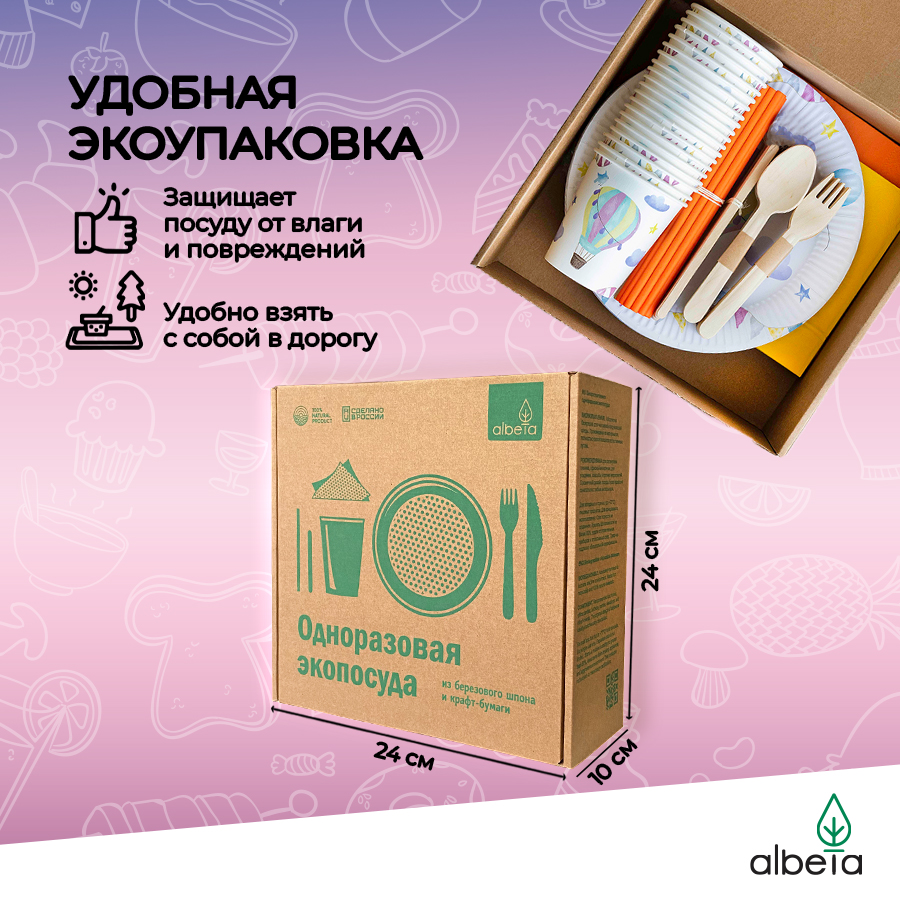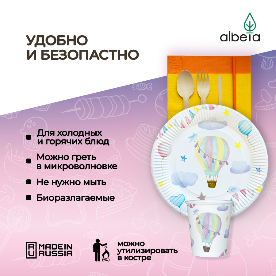 Купить Одноразовая посуда для праздника детская (тарелки, стаканчики, вилки, ложки) набор на 20 персон, принт "Воздушный шар"