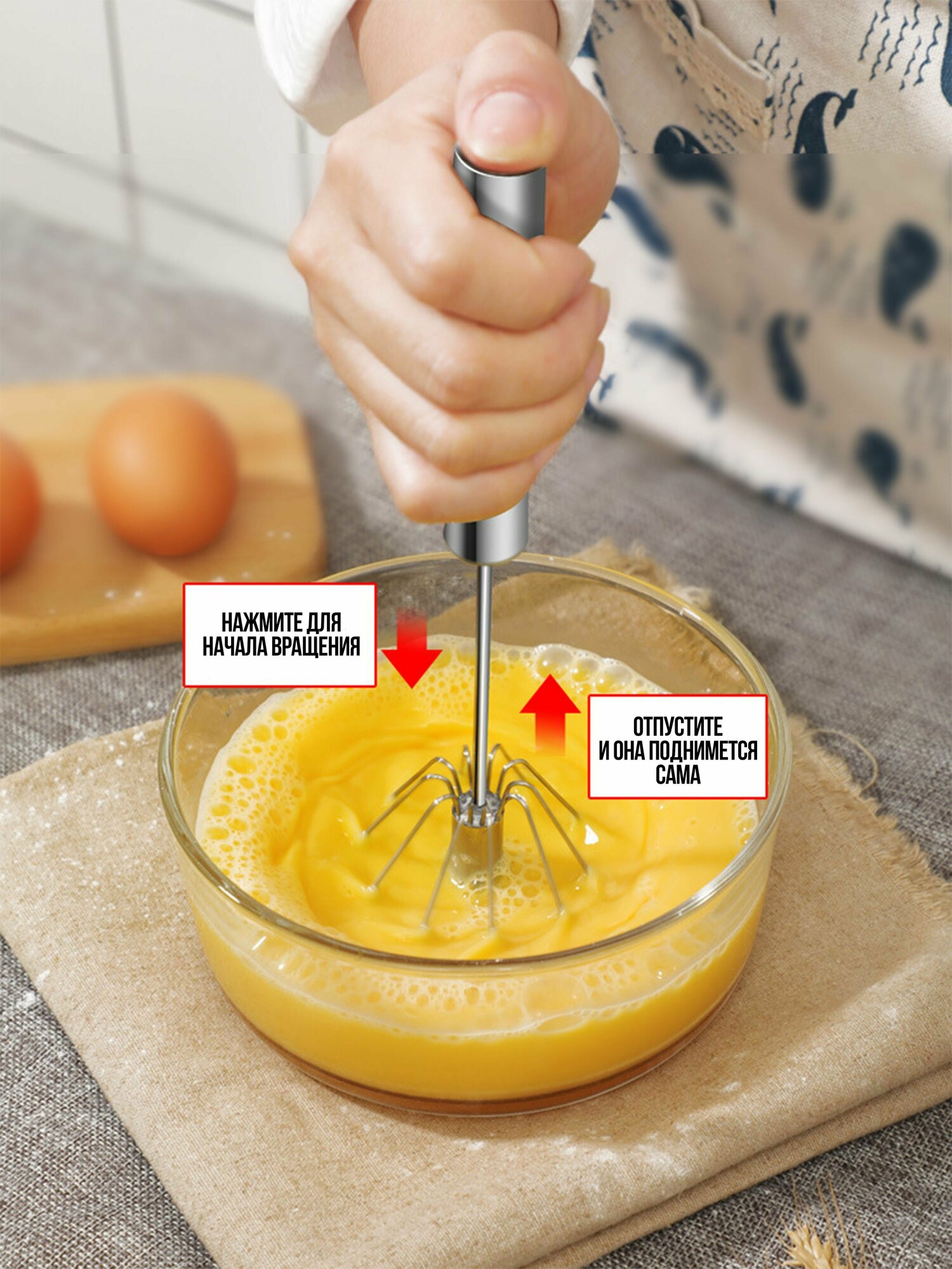 Венчик для взбивания ручной нажимной, длина 36 см интересное: