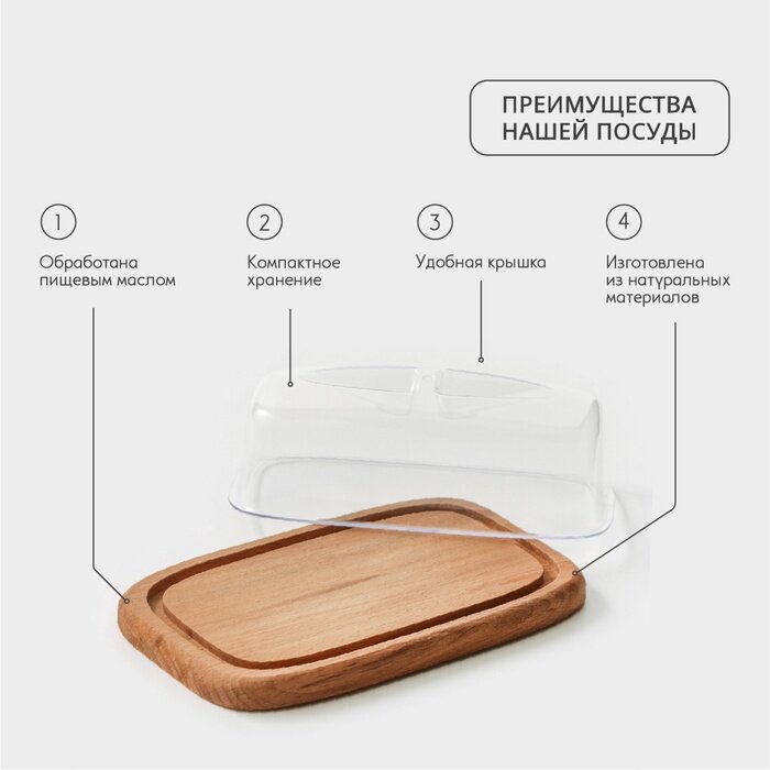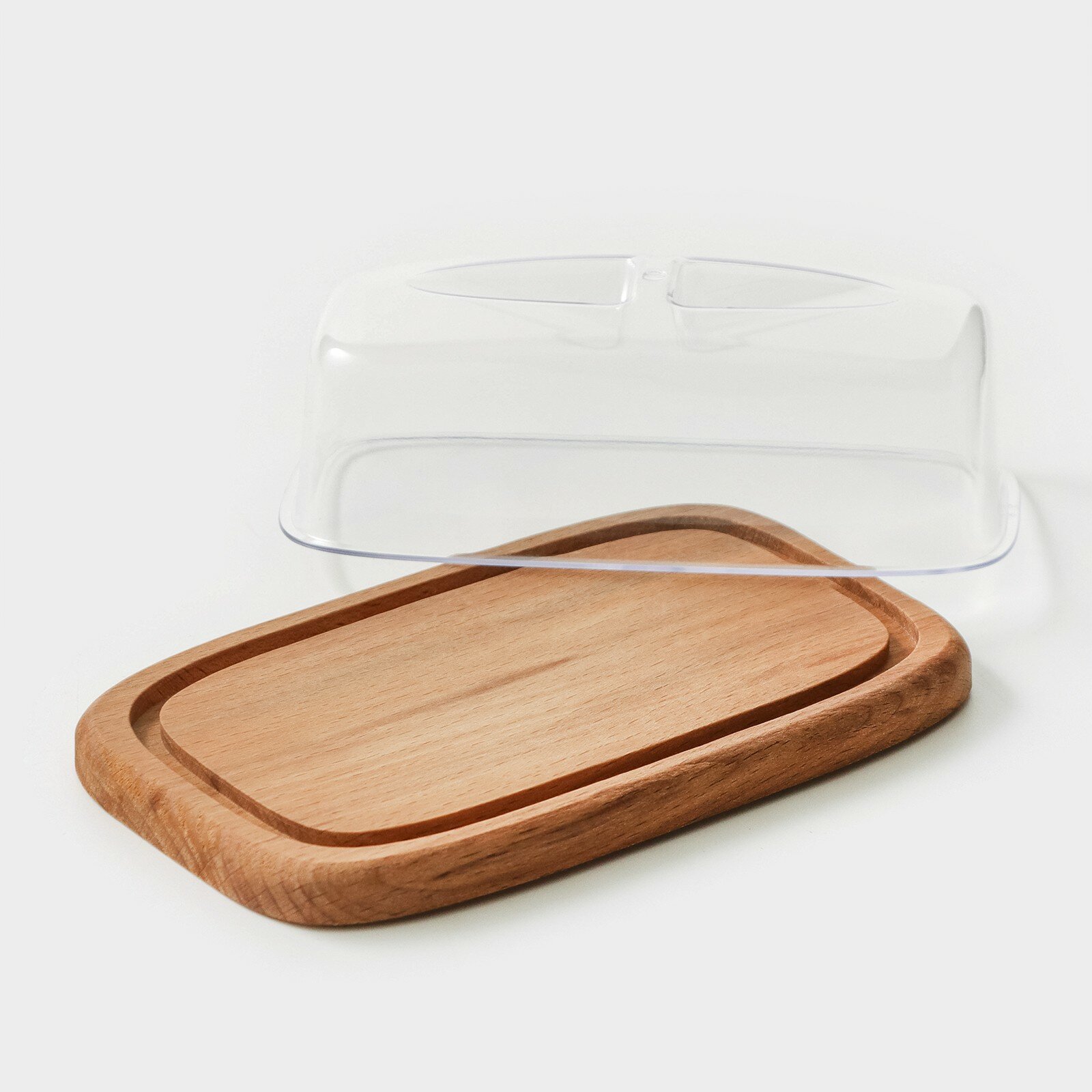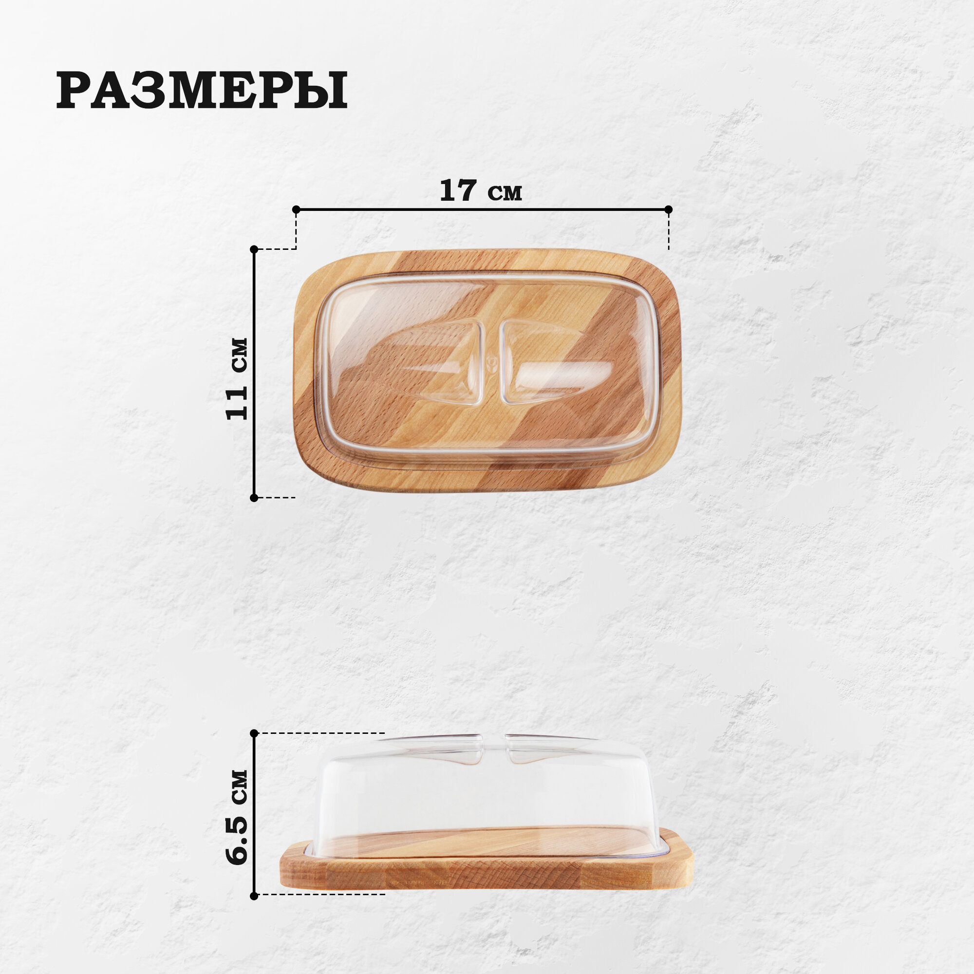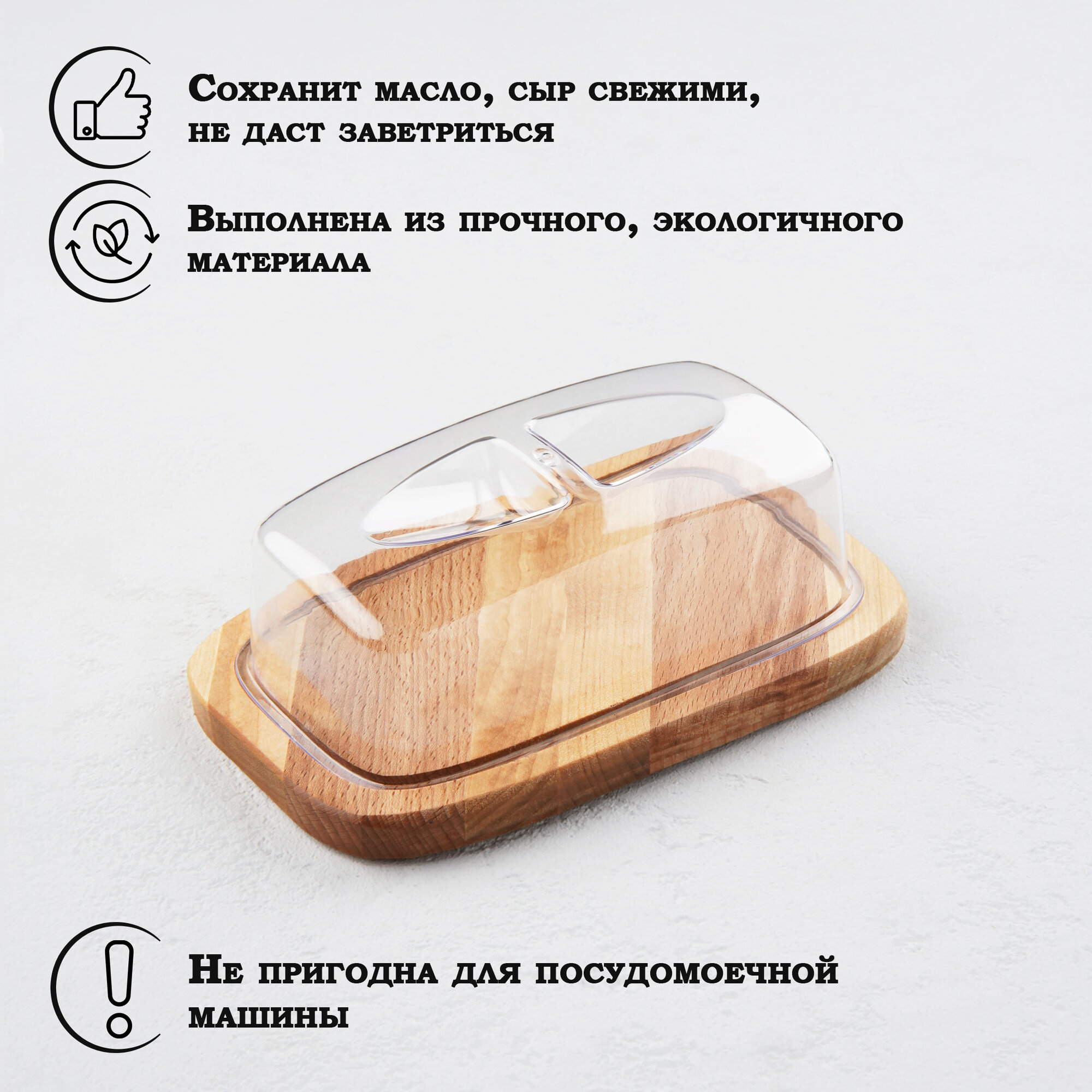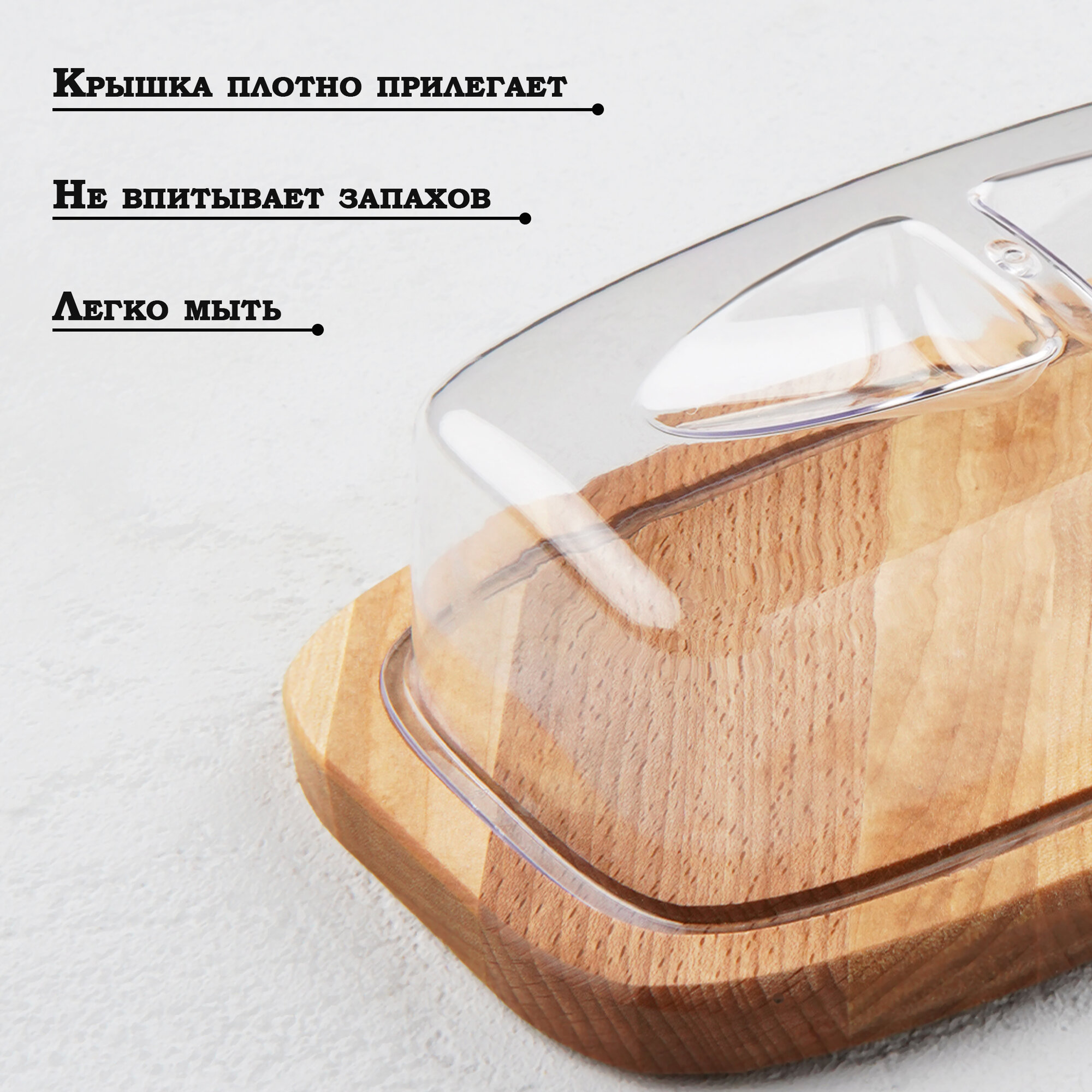 Маслёнка - сырница деревянная с крышкой Adelica, 17×11×6,5 см, берёза