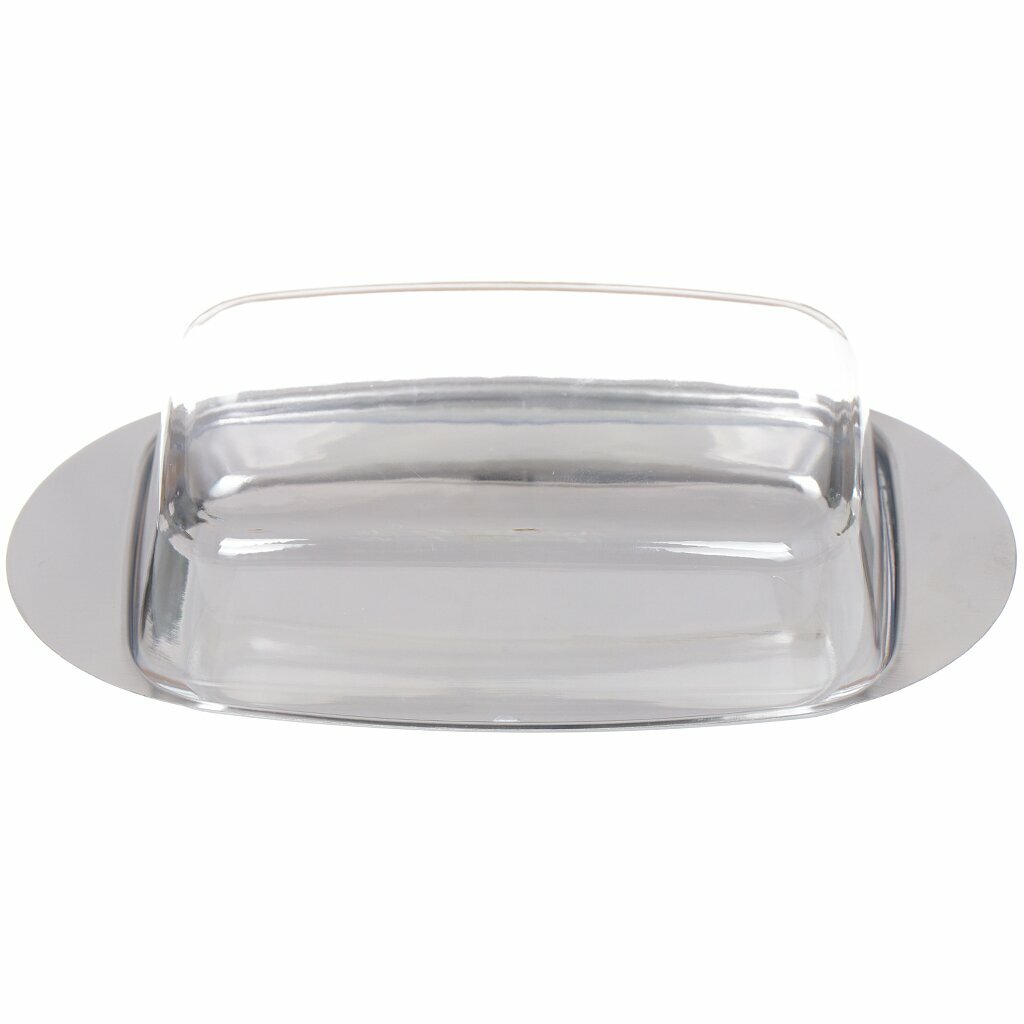 Масленка для сливочного масла стальная с пластиковой прозрачной крышкой 18x11x4 см