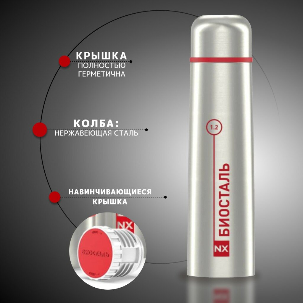 Термос биосталь NX-1200 1,2л, серебристый/красный