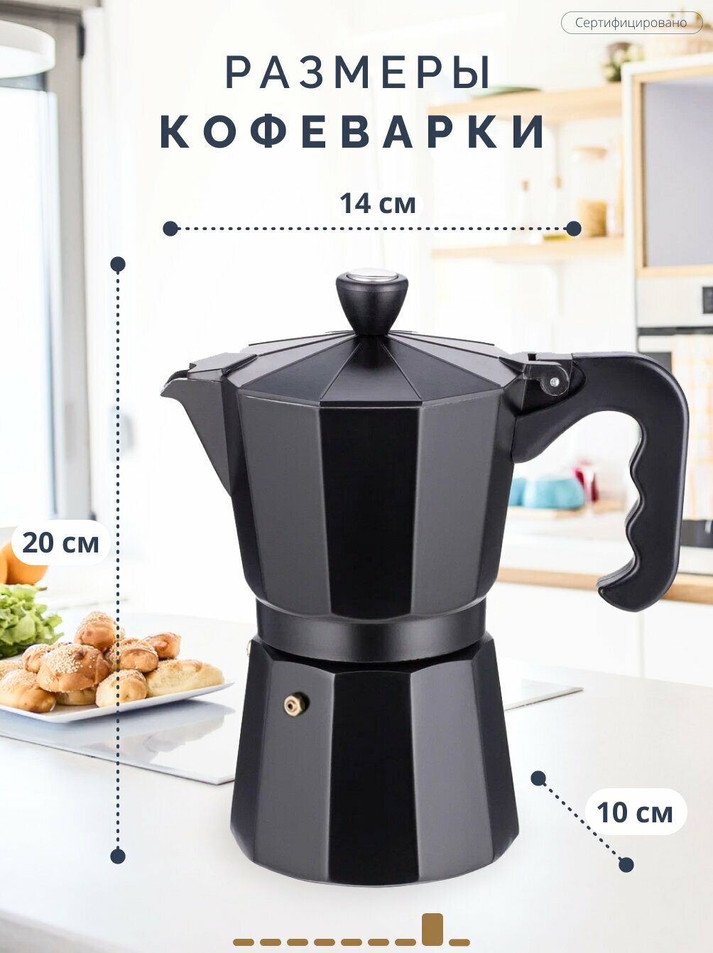 Кофеварка гейзерная TECO TC-402-9 cups черн, 450 мл, алюминиевая
