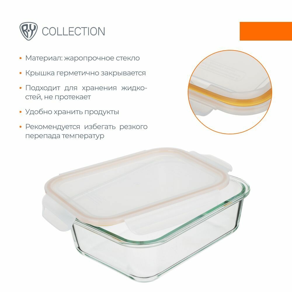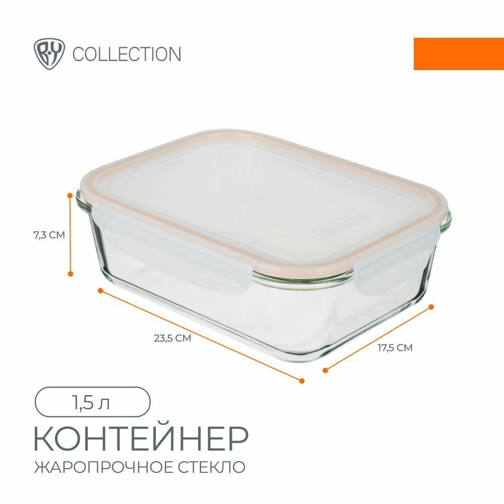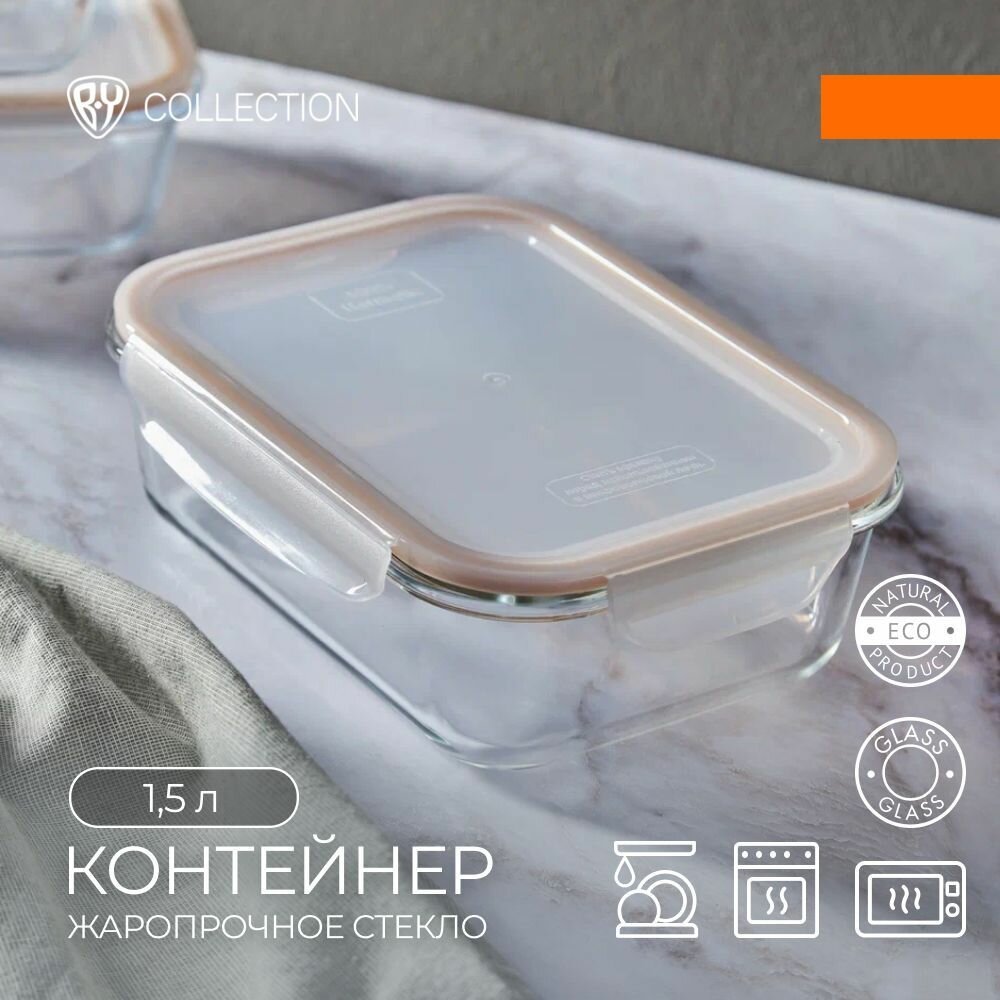 Контейнер герметичный для продуктов 1,5л BY COLLECTION, 23,5х17,5х7,3см, жаропрочное стекло интересное: