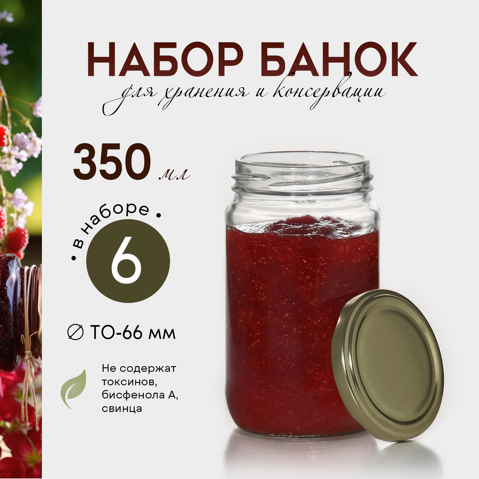 Купить Набор банок с крышкой, ТО-66 мм, стекло, 350 мл, 6 шт.