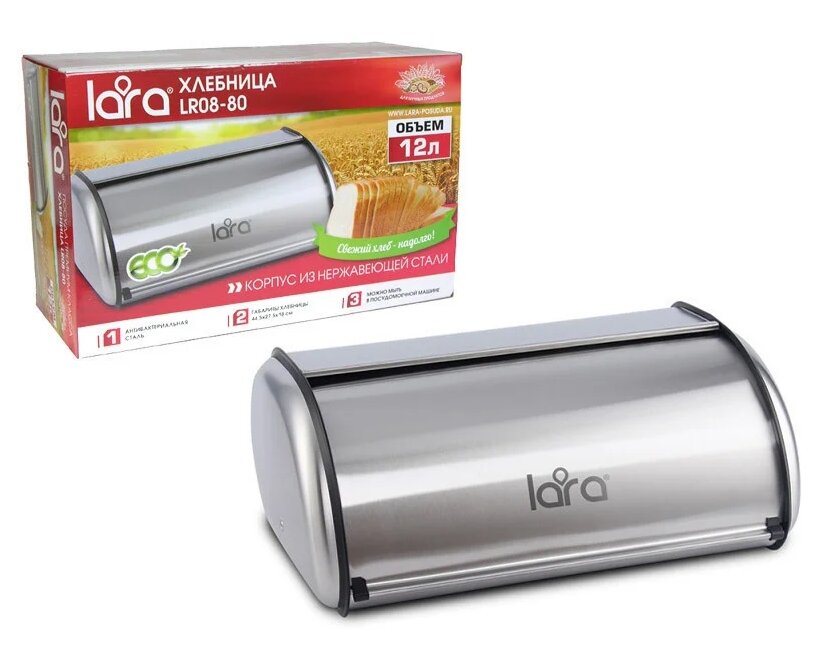 Хлебница LARA LR08-80 /нерж, 12л, антибактериал., 445х275х180мм интересное: