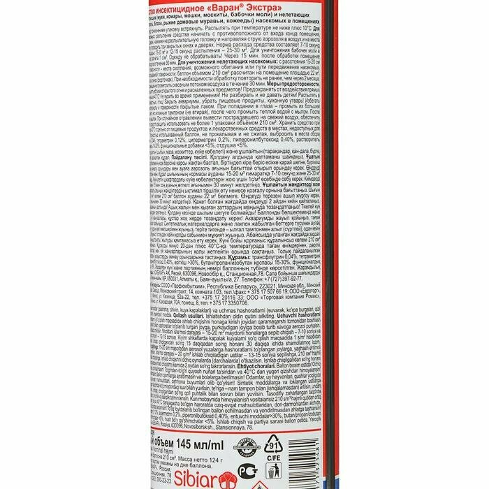 Сибиар Инсектицид Варан Экстра без запаха (от летающих) 190 мл
