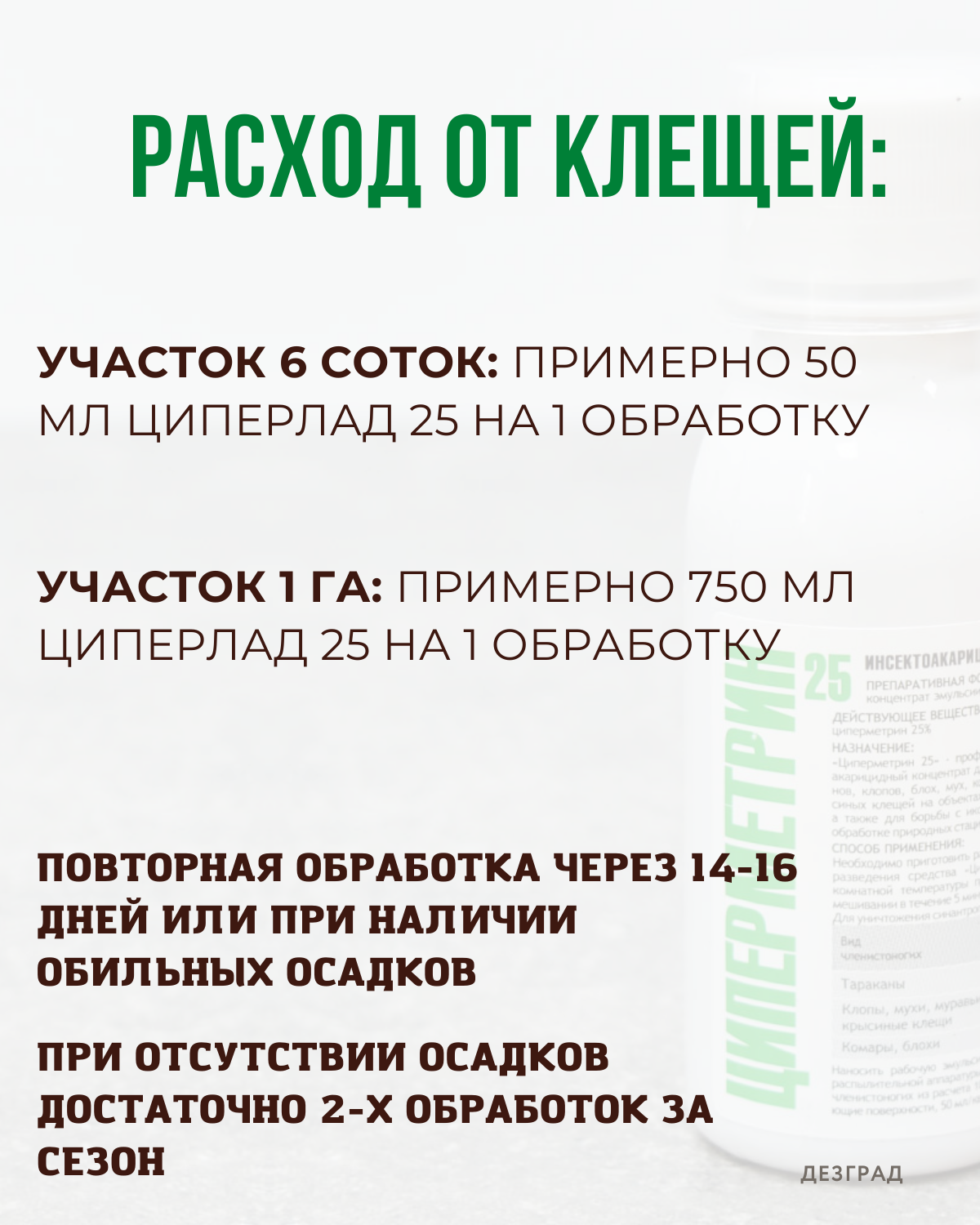 | Подробная комплектация | Циперметрин 250 - 50 мл, флакон |