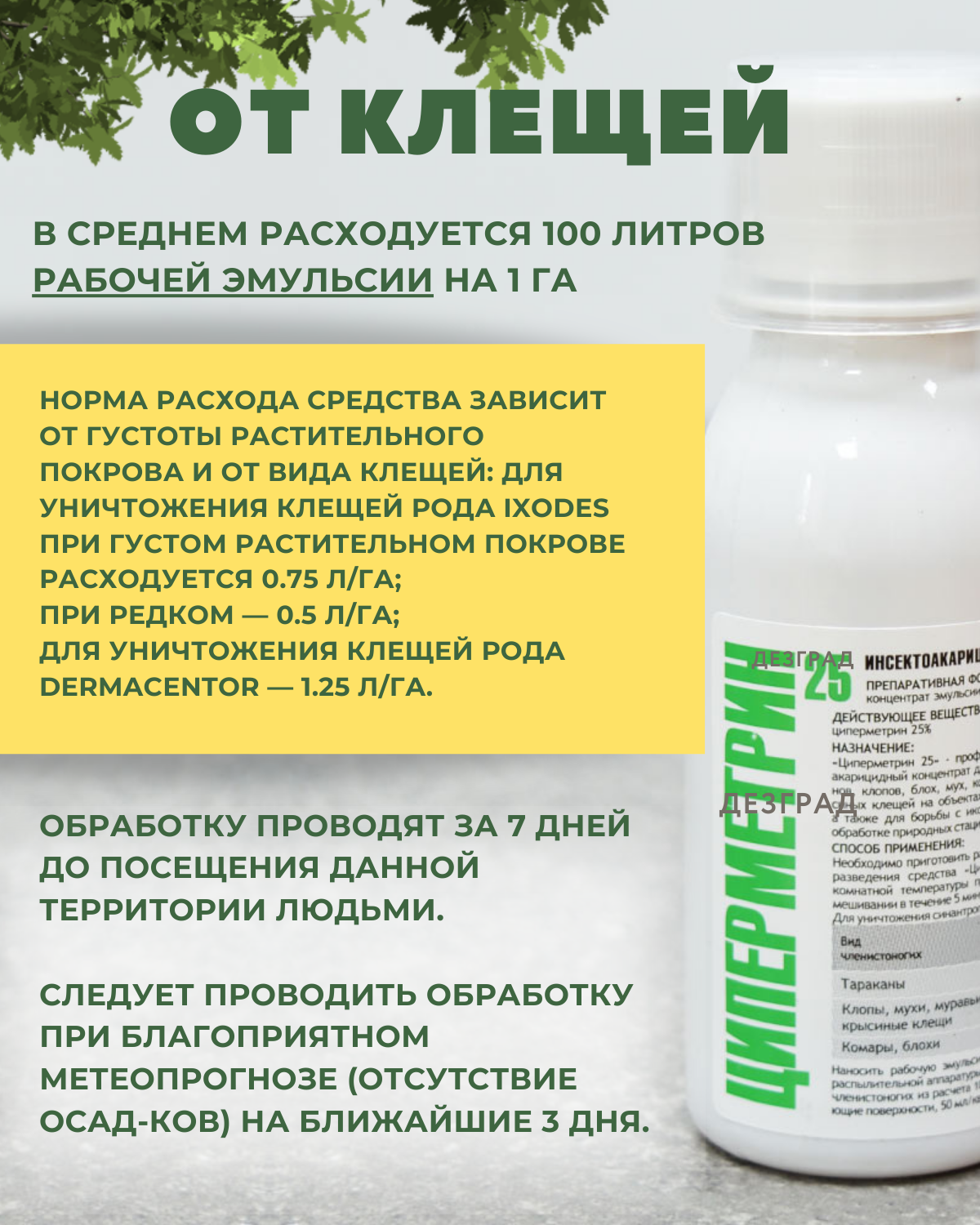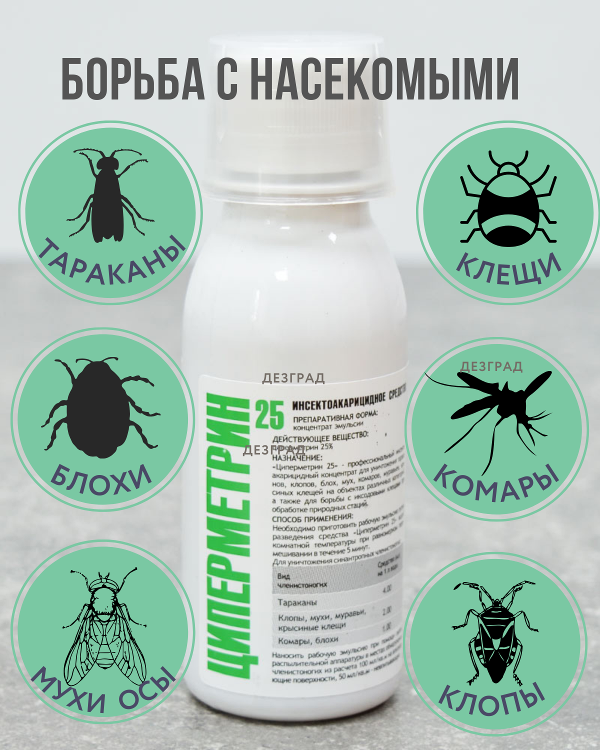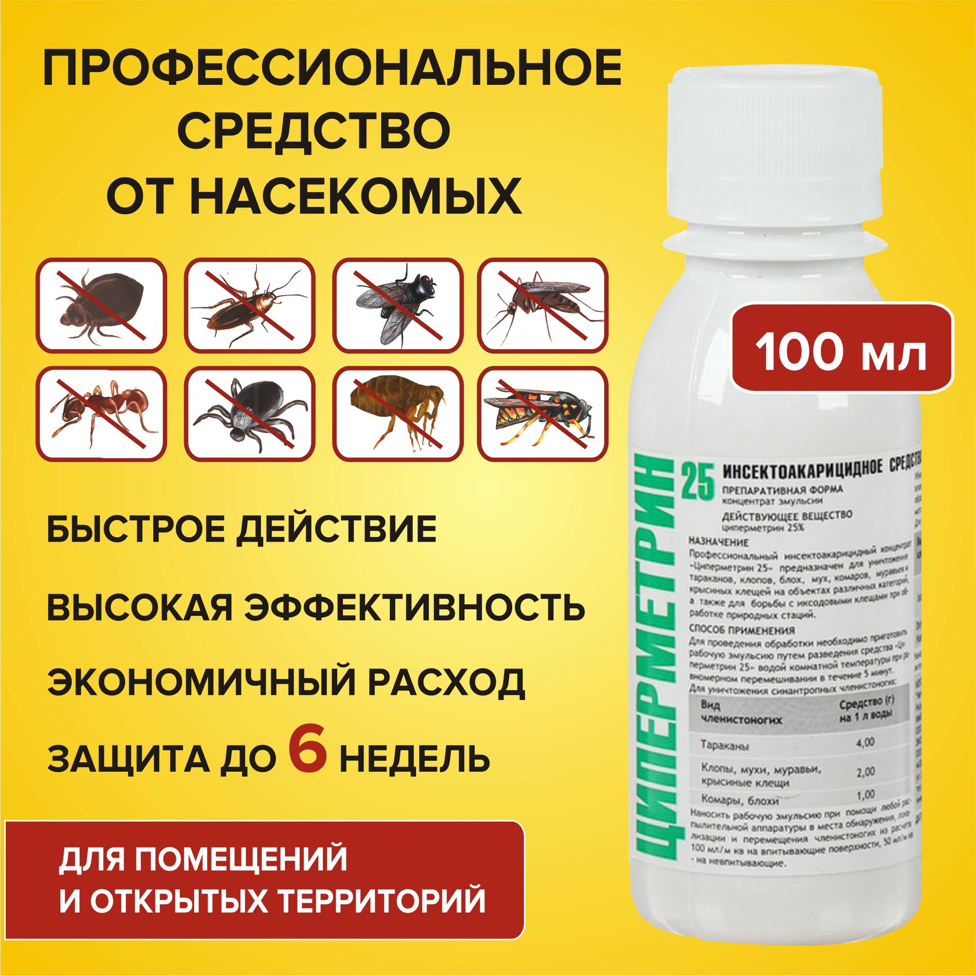 Циперметрин 25 средство от клещей, комаров, мух, клопов, тараканов, блох, муравьев, 100 мл