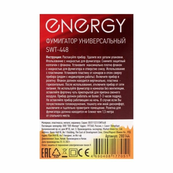 Фумигатор универсальный ENERGY SWT-448 интересное: