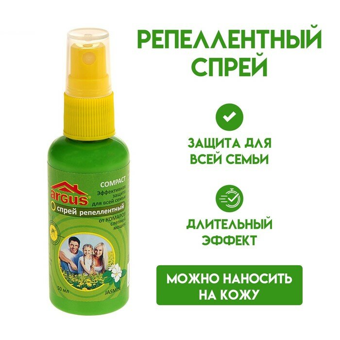 Лосьон ARGUS COMPACT репеллентный от комаров, слепней и мошек с запахом жасмина, 65 г, 50 мл, зеленый