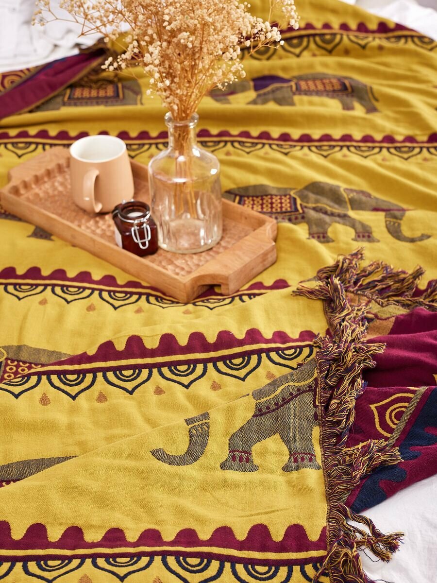 Купить Муслиновый двусторонний плед Sundelica "Три слона" 200x230 см для дивана и кровати, для дома и дачи