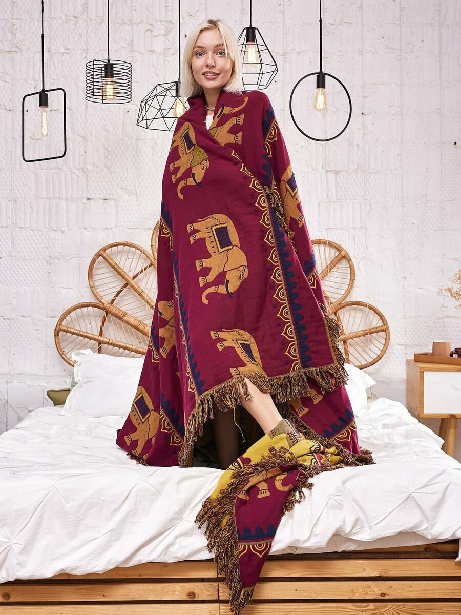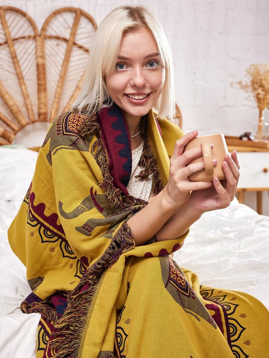 Покрывало Sundelica на диван, на кровать, на кресло, дизайн "Орнамент", размер 160x220 см, с бахромой