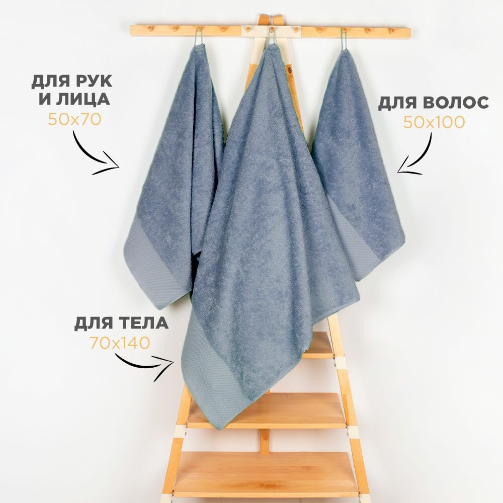 Набор полотенец BELLEHOME "Аквамарин", махровые, 3 шт, 50х70 см, 50х100 см, 70х140 см, хлопок 100 %