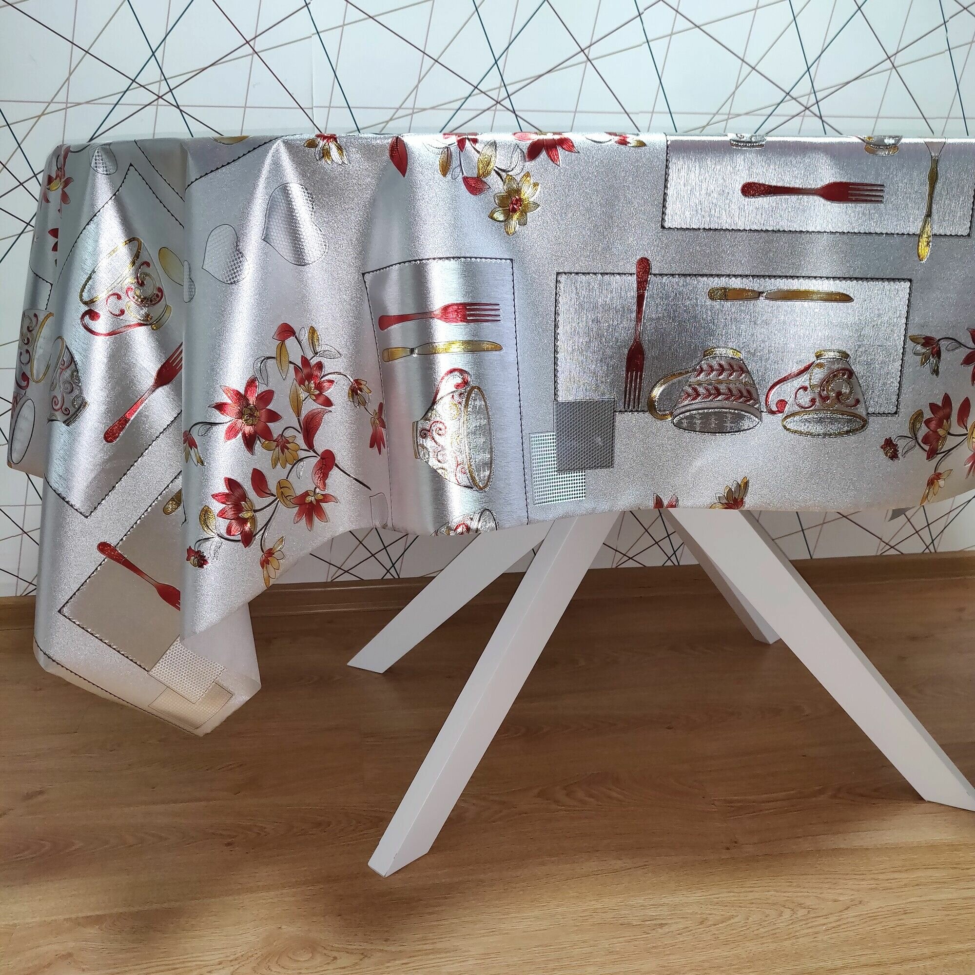 Скатерть-клеёнка на стол ПВХ, на тканевой основе 110х140 см Серебряная