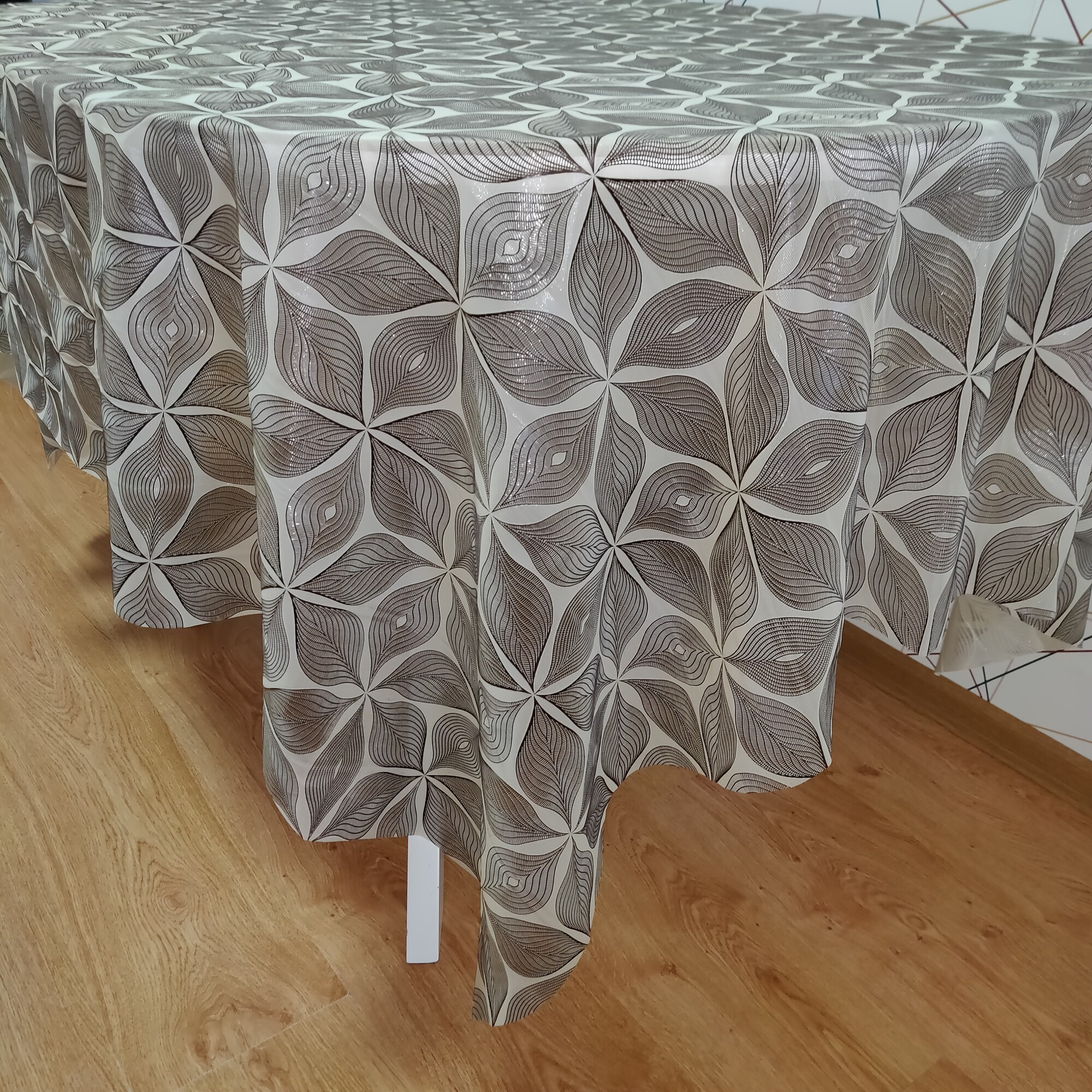 Скатерть-клеёнка на стол ПВХ, на тканевой основе 180х140 см Серебряная